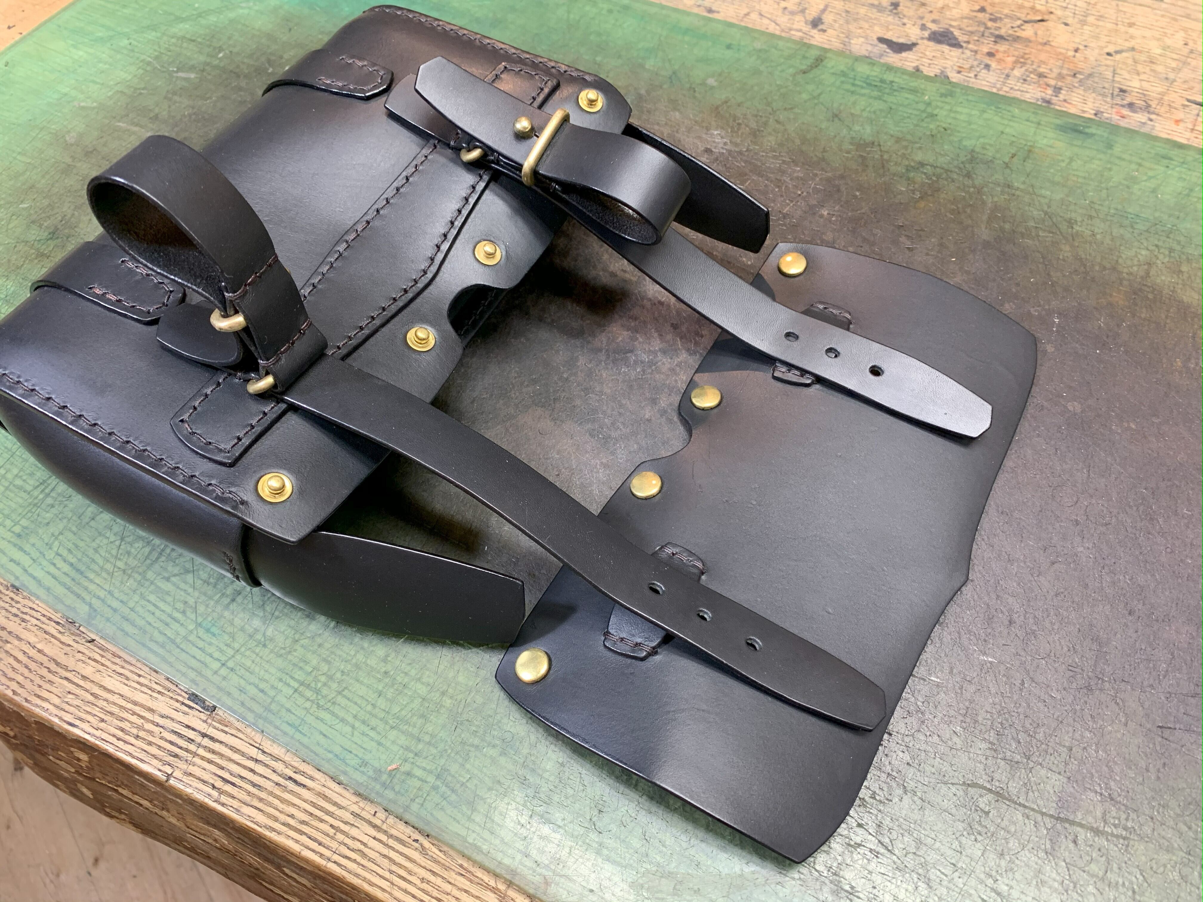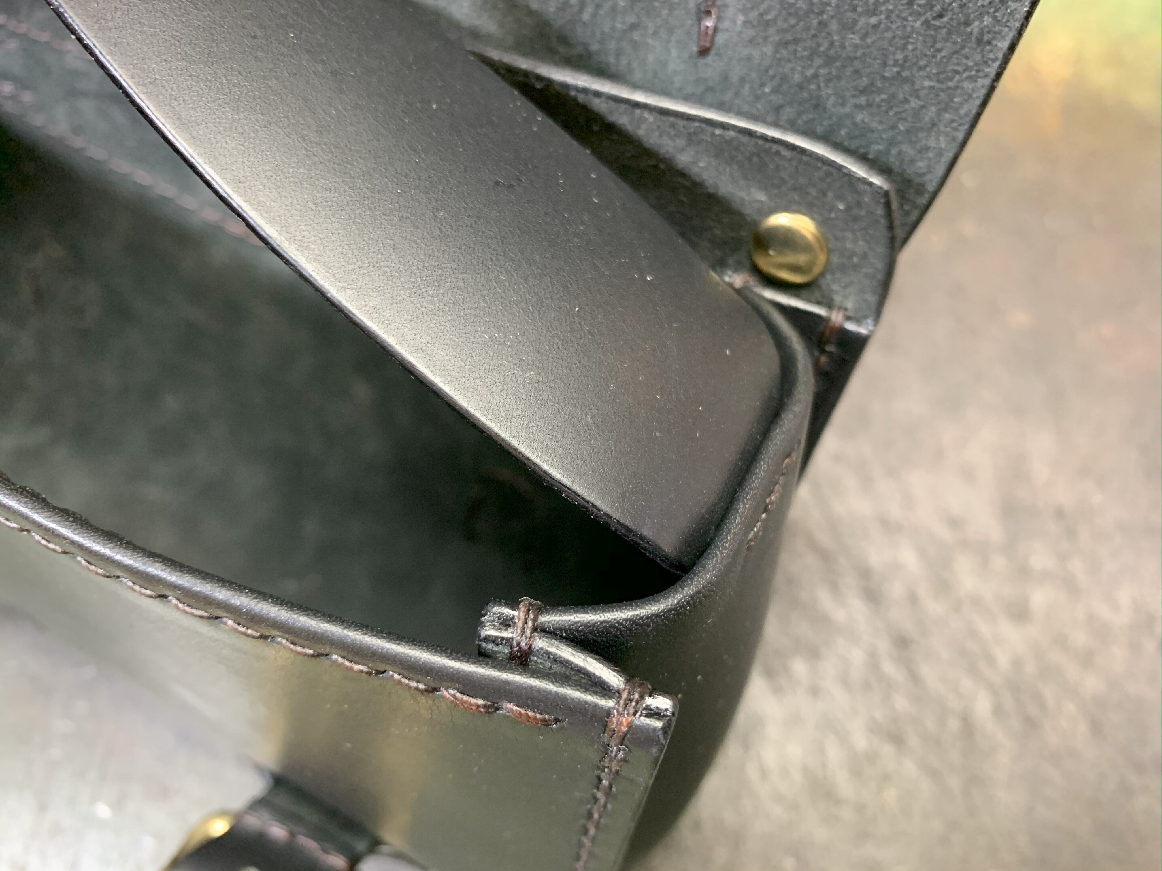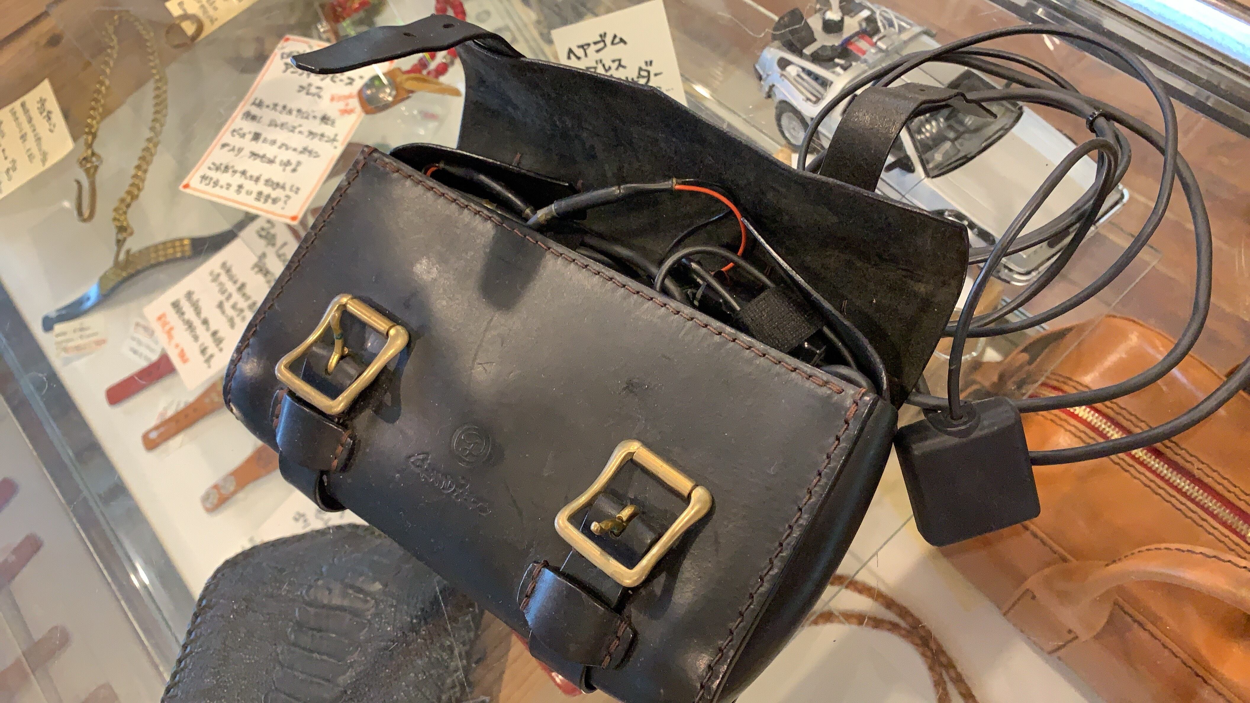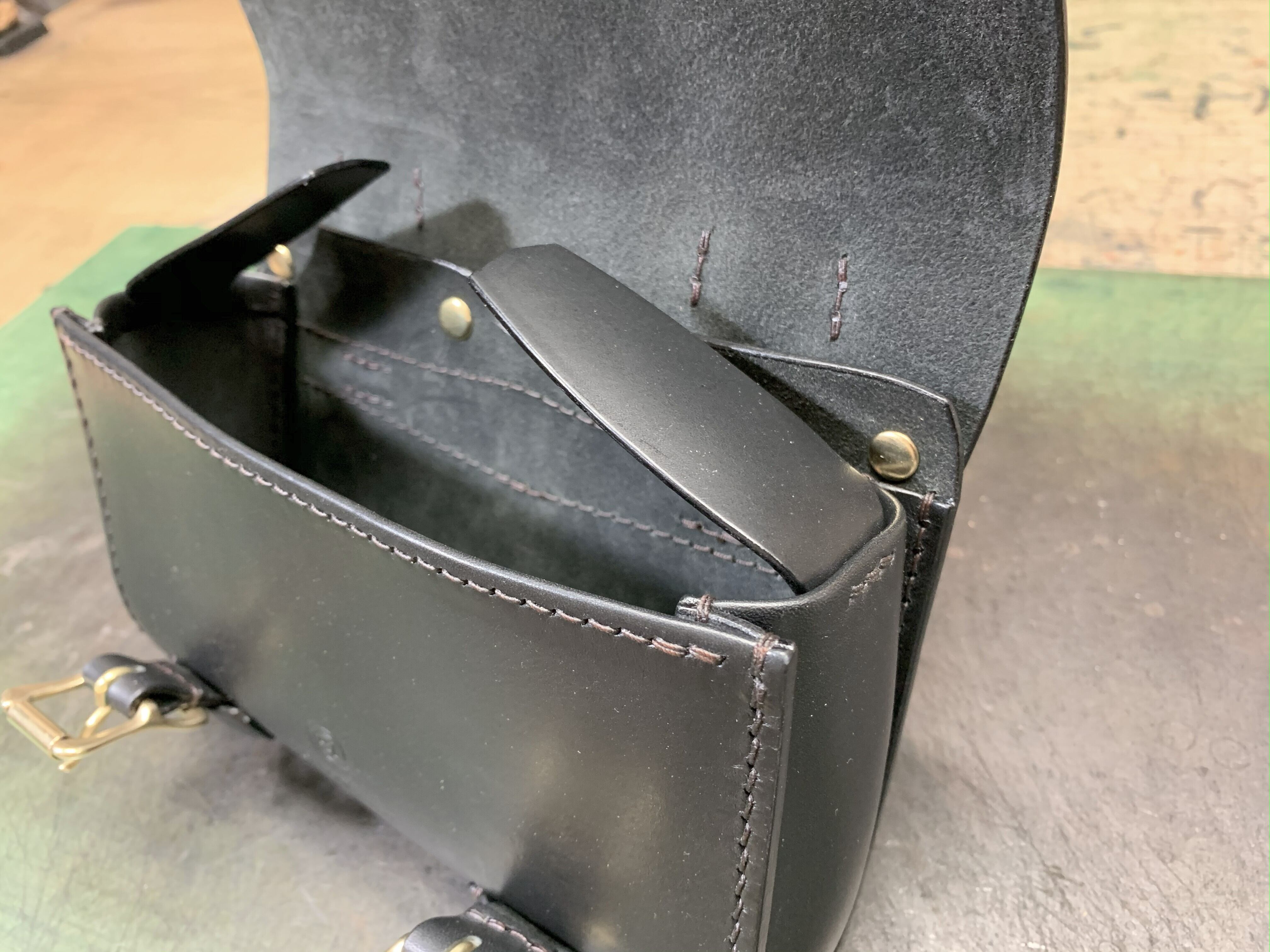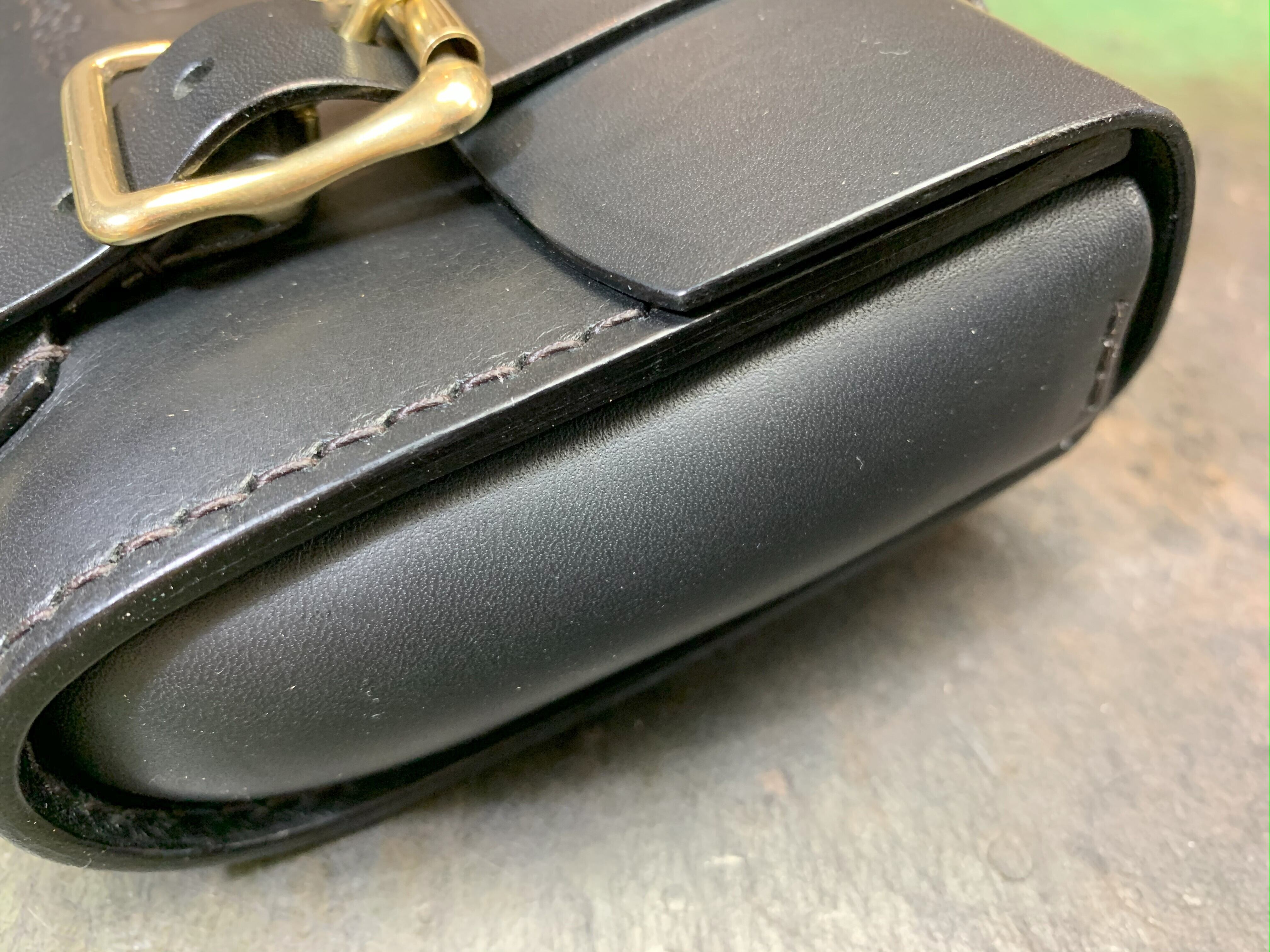 本体を入れて配線をきちんと収納できるサイズ設定はもちろんの事、工具入れほどの頑丈さは必要ないので革厚も2㎜を基準に作っています。