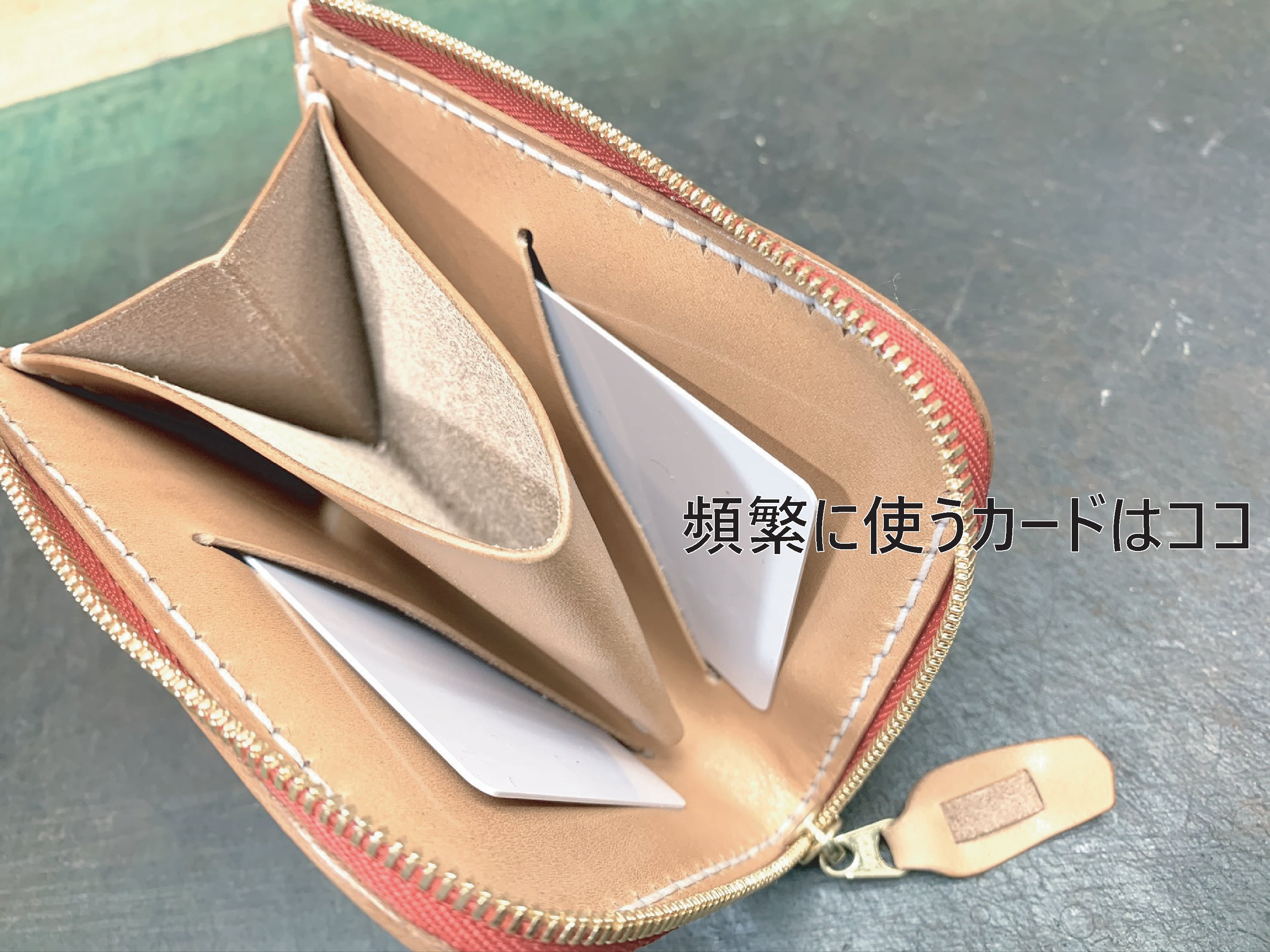 →コインケース下部の手前側に「アール」を付けたので小銭を出す時にこの部分が活躍する