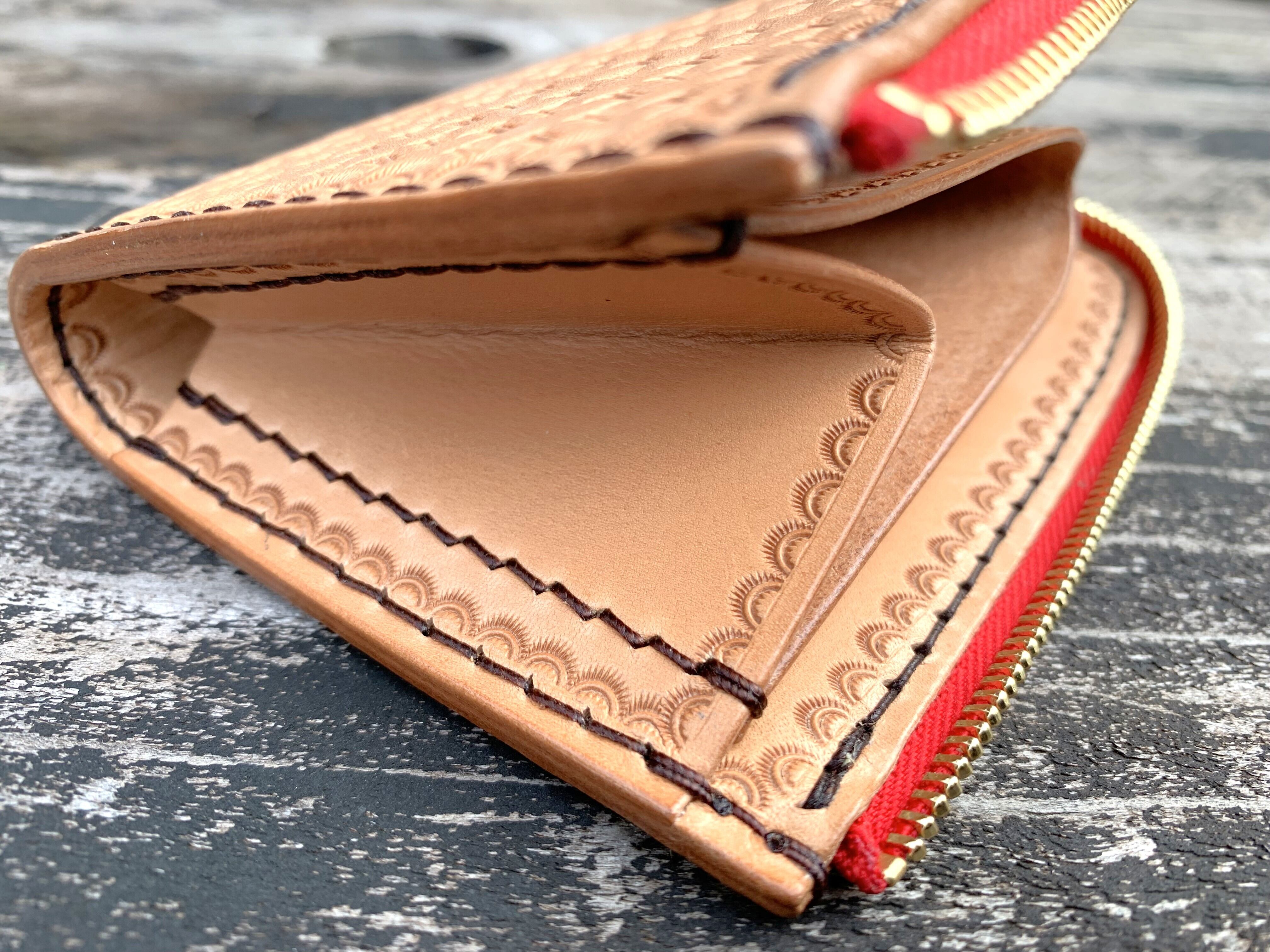 #L字ファスナーウォレット(バスケットスタンプ)・ヌメ色モデル