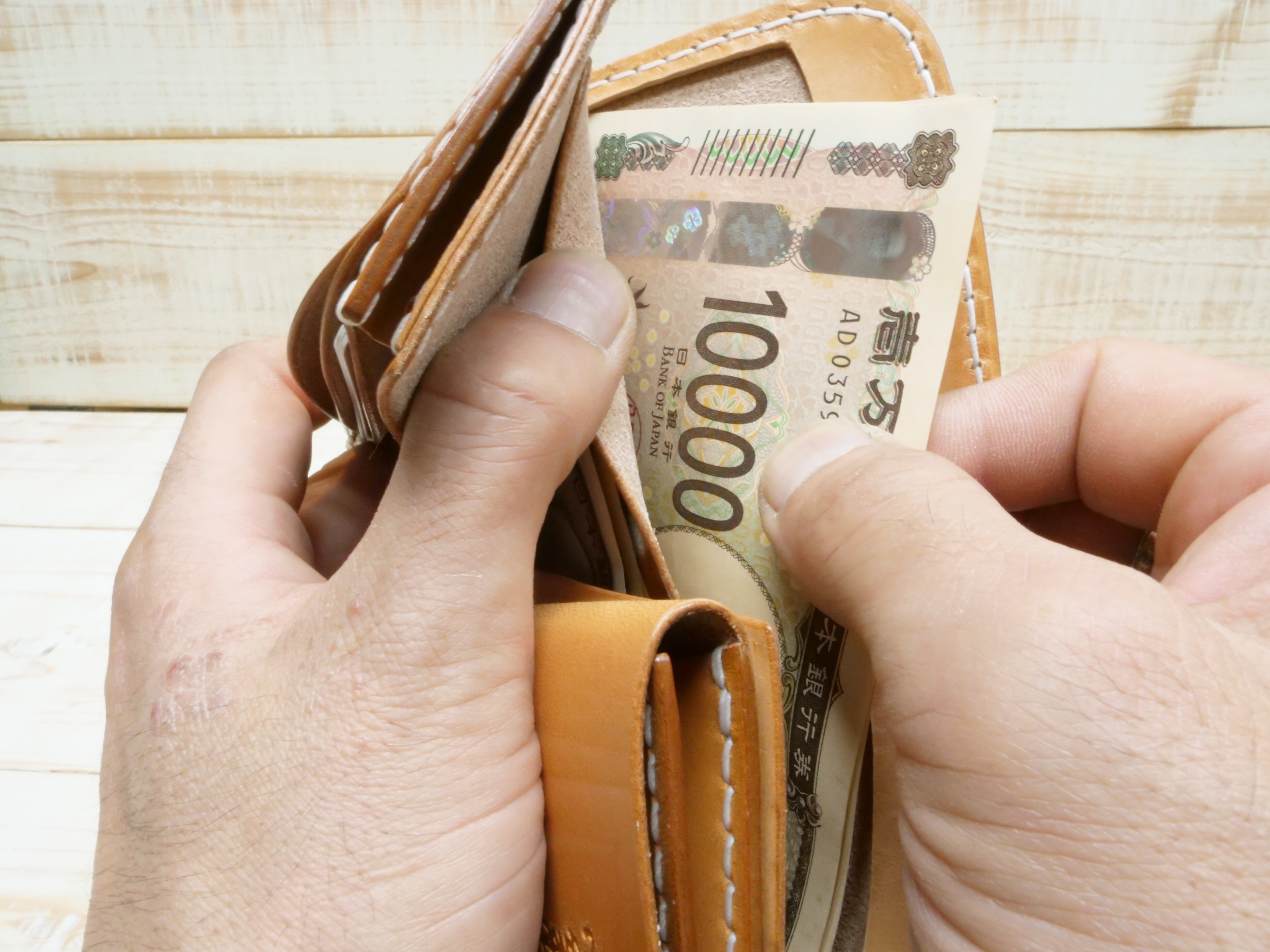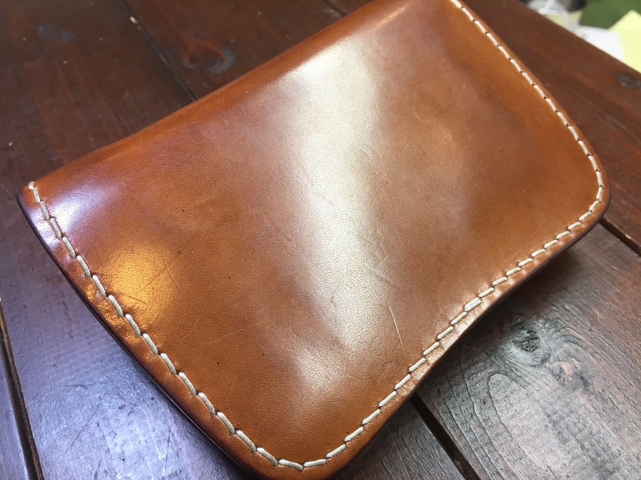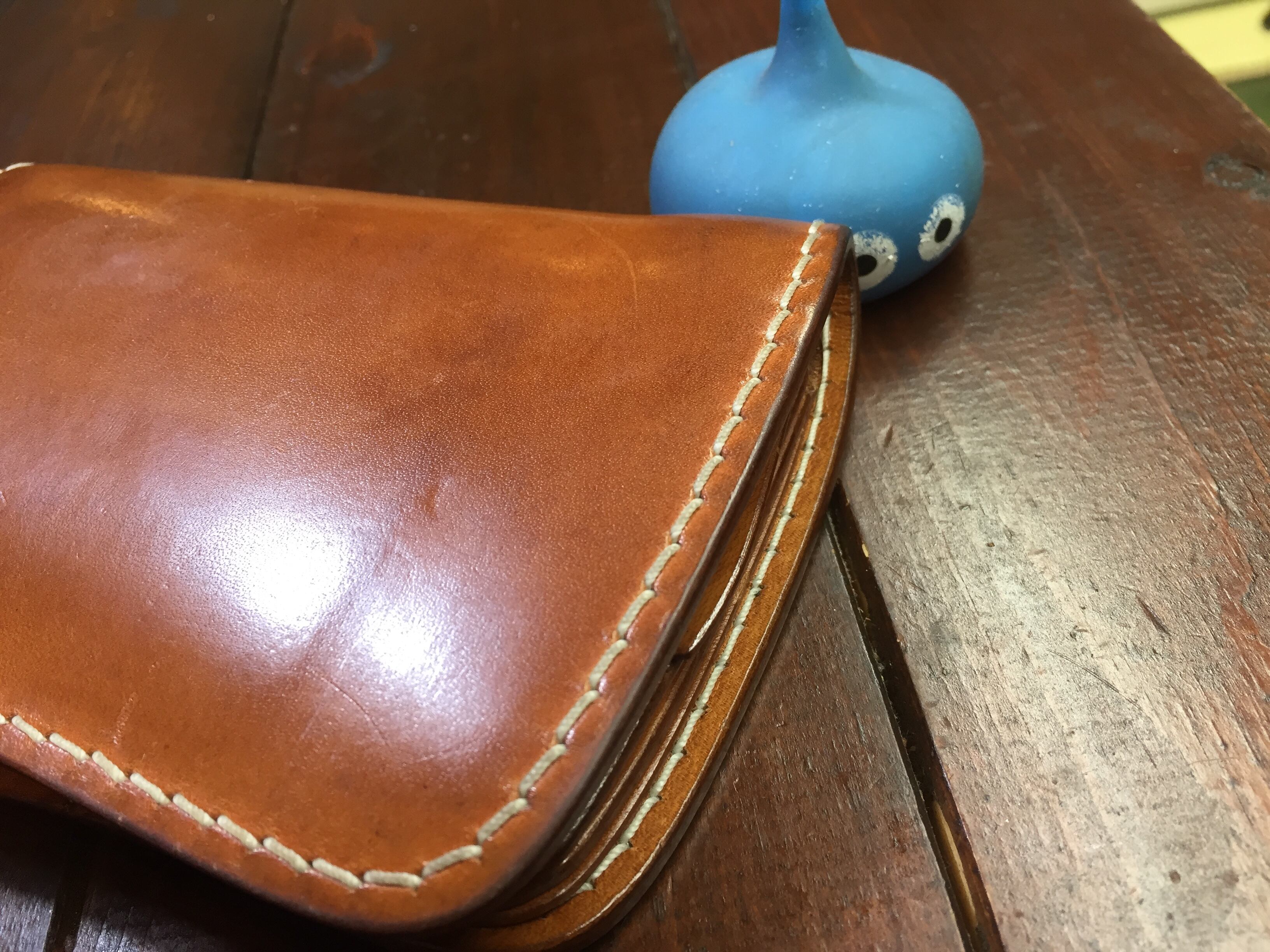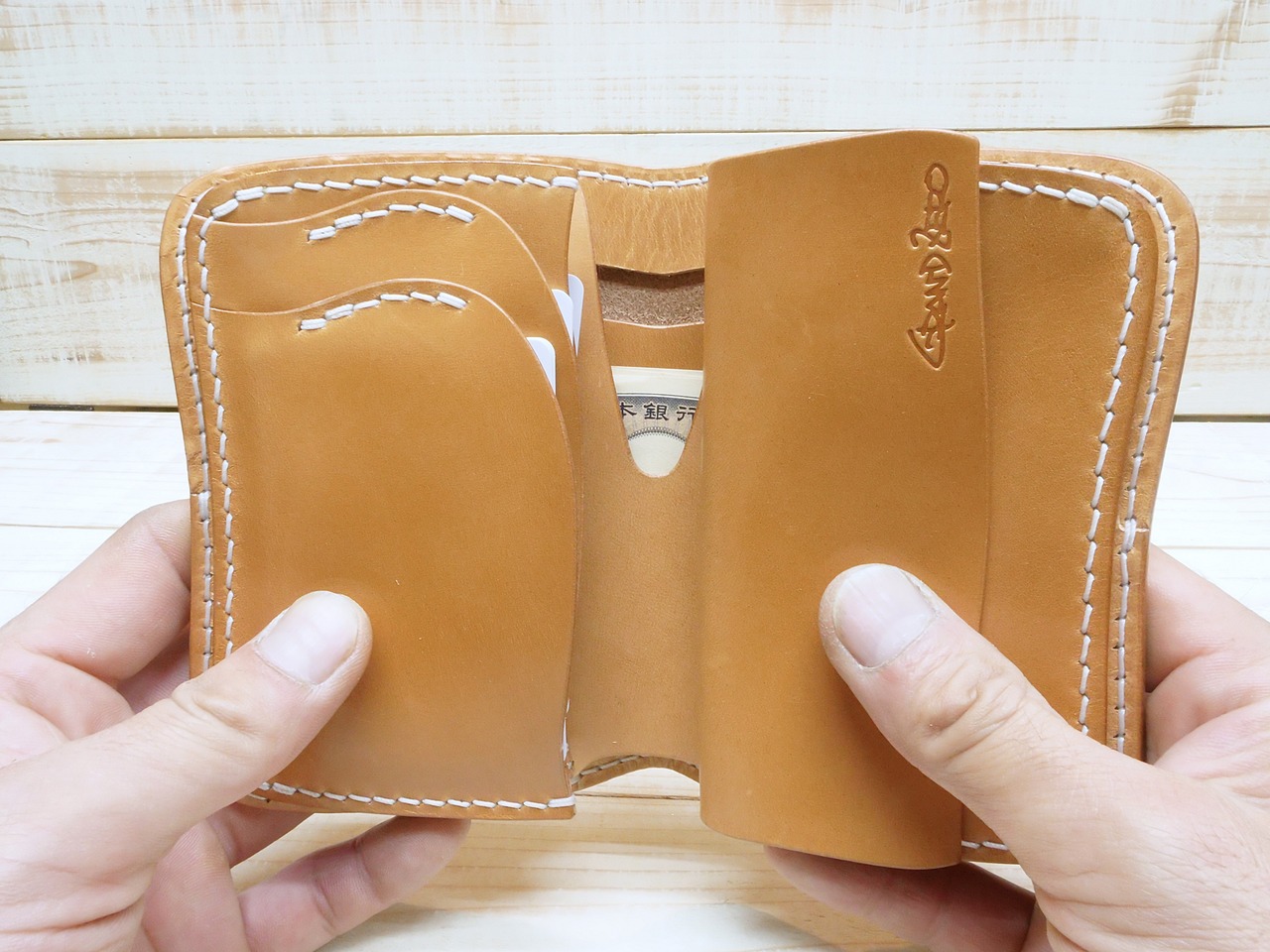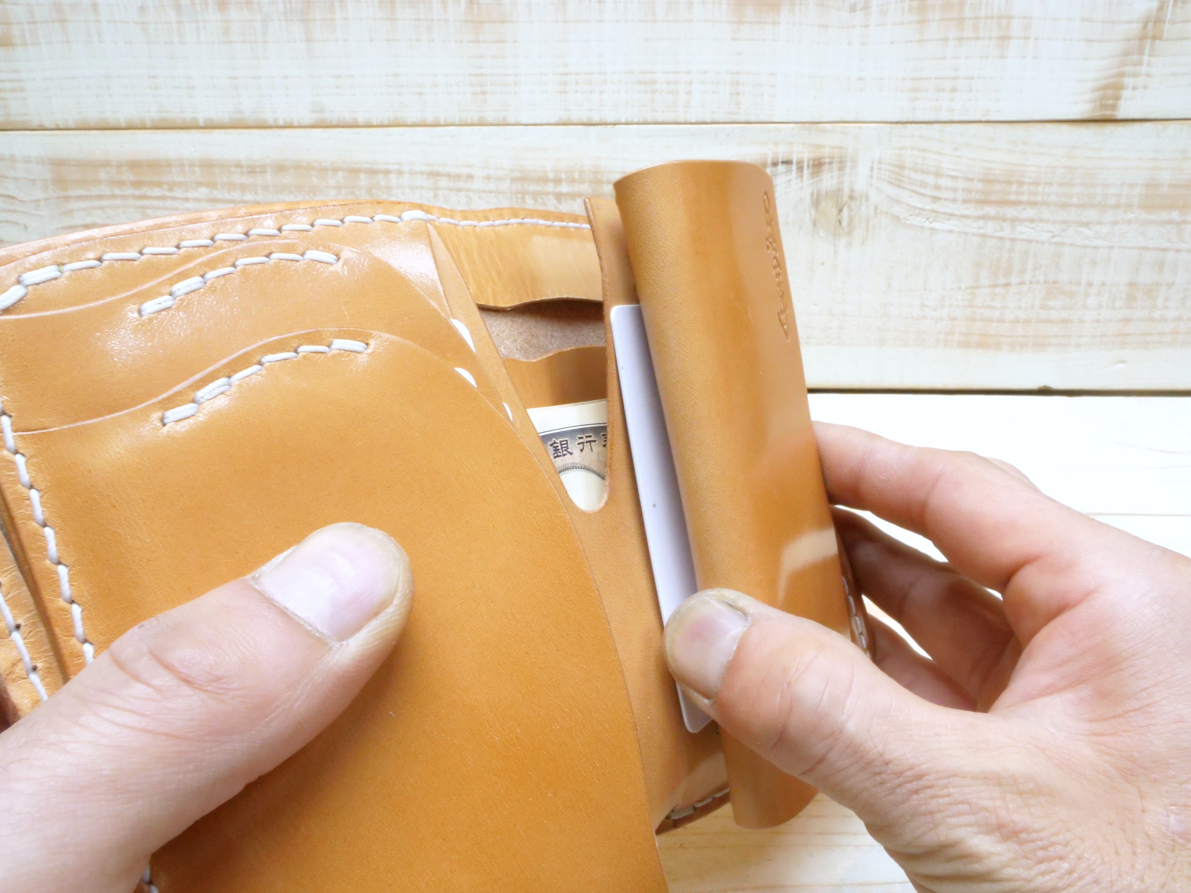 小銭スペースを中央部分にオフセットさせているのでウォレットの端の部分が沈み、中央部分がふくらむ「どら焼き状」になっていきます。