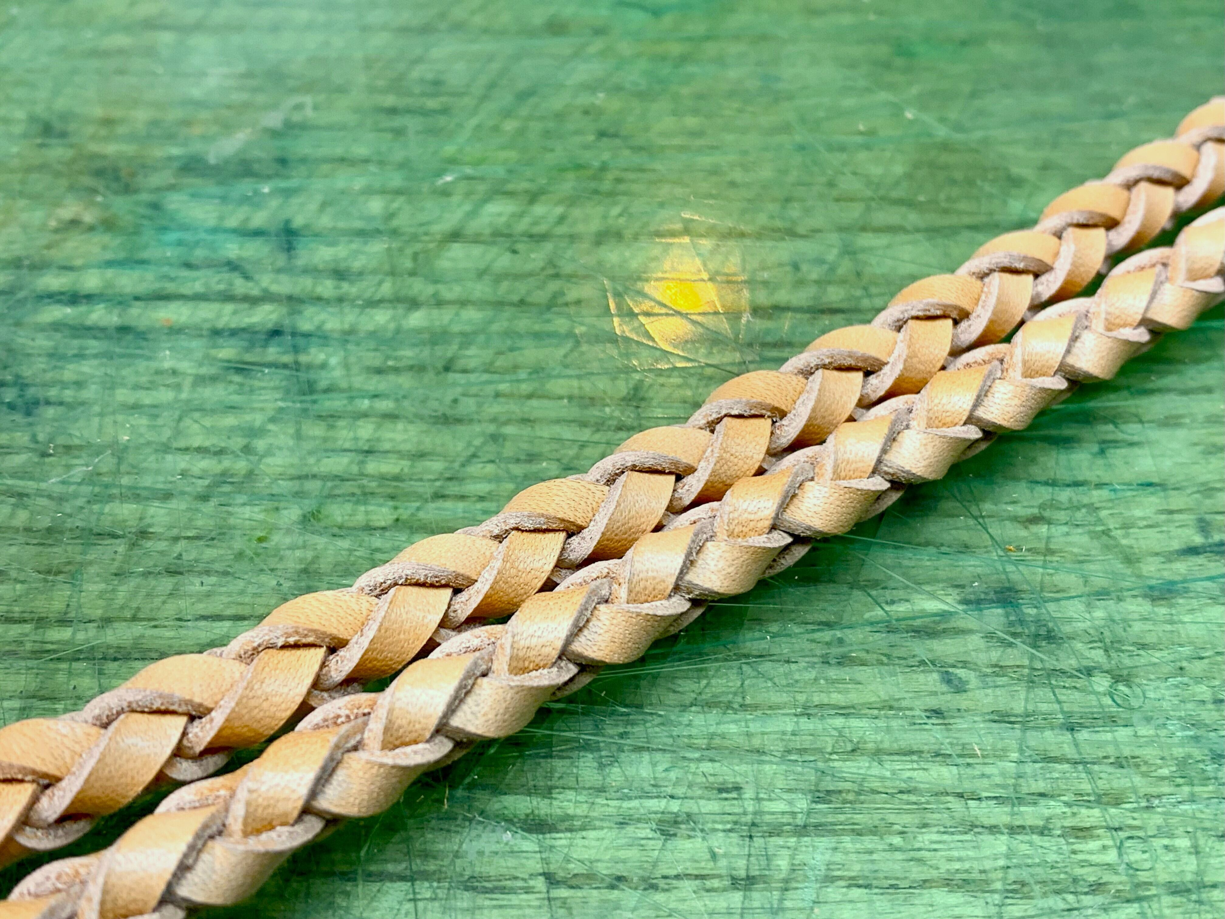 サイズ:長さ450mm〜500mm(金具を含む)・手編み、革の個性によって誤差が出ます