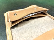 「仕切り革」(1,000/税別)を差し込むことで上にカードを数枚、下に小銭を入れ、お札を三つ折りにして忍ばせればスッキリ度満点のちょっとしたお財布になります!!