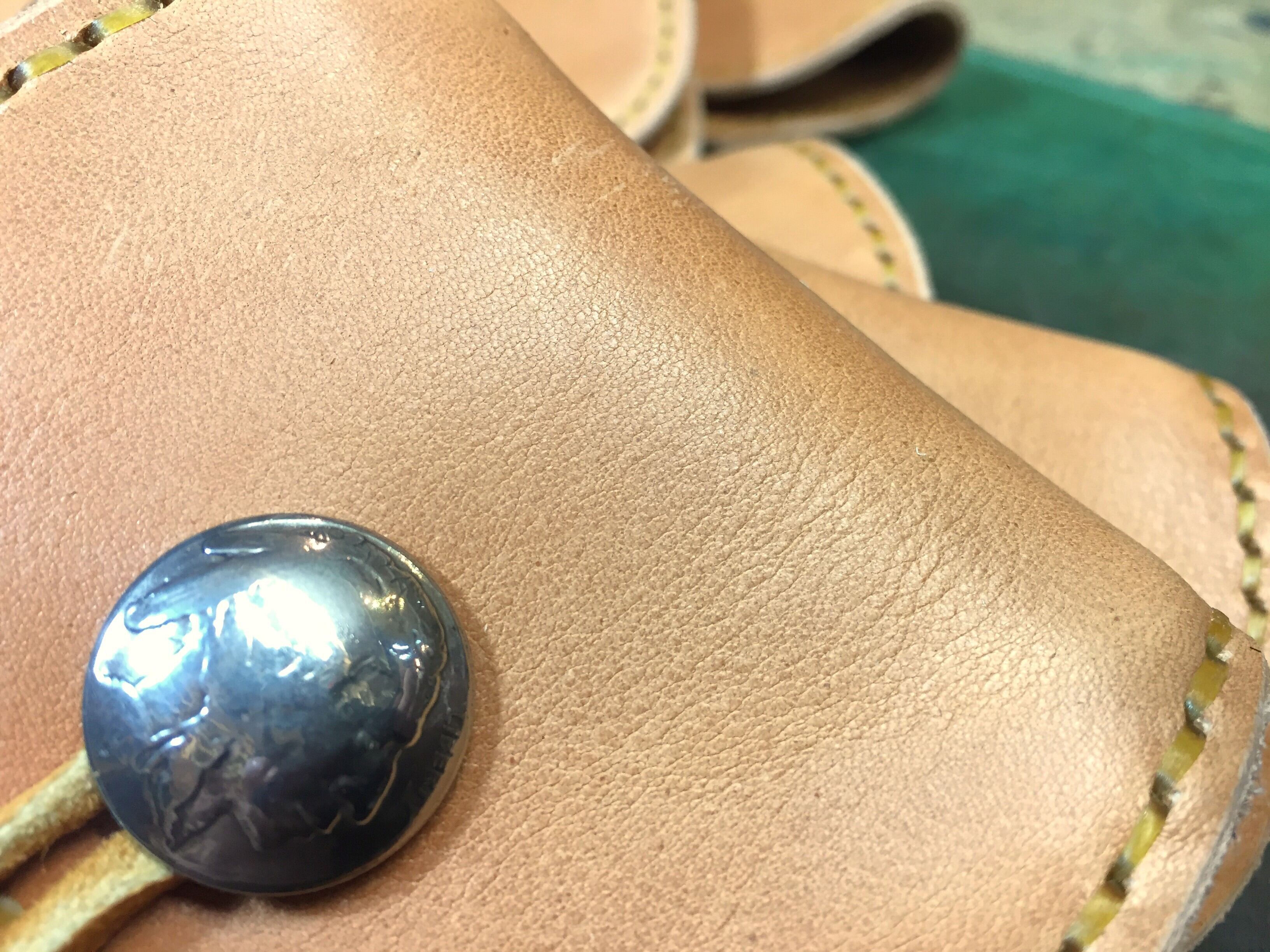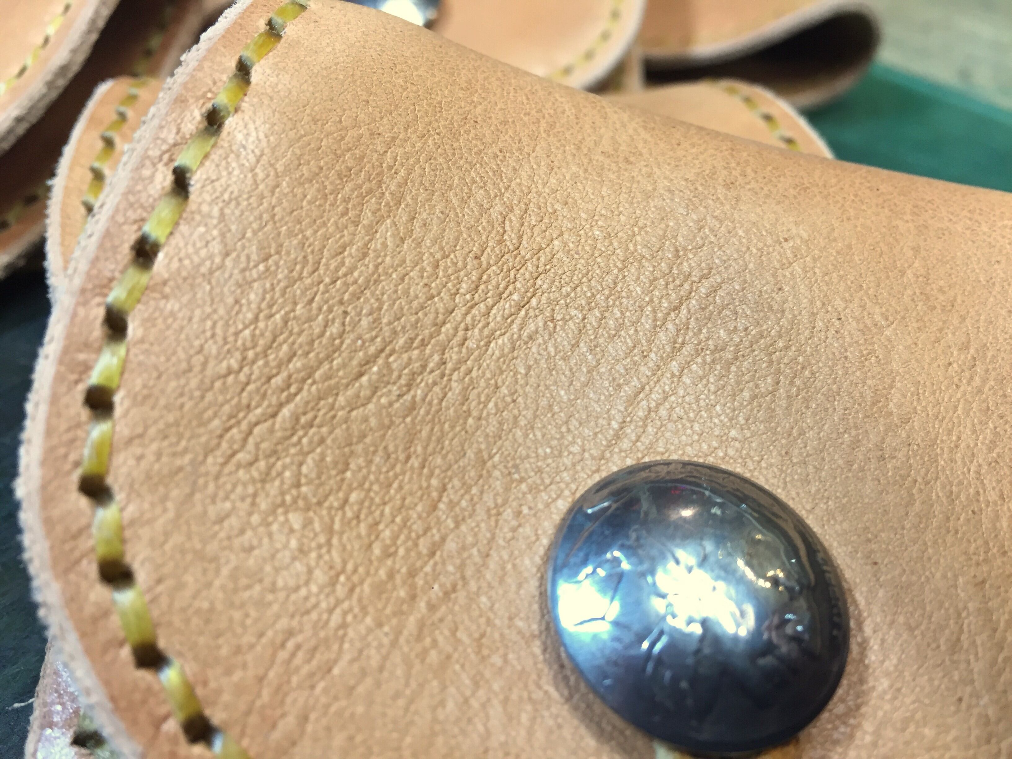 極力コストを抑えたいので革の断面(コバ)は磨かずにヤスリで荒らした状態の仕上げとしています。