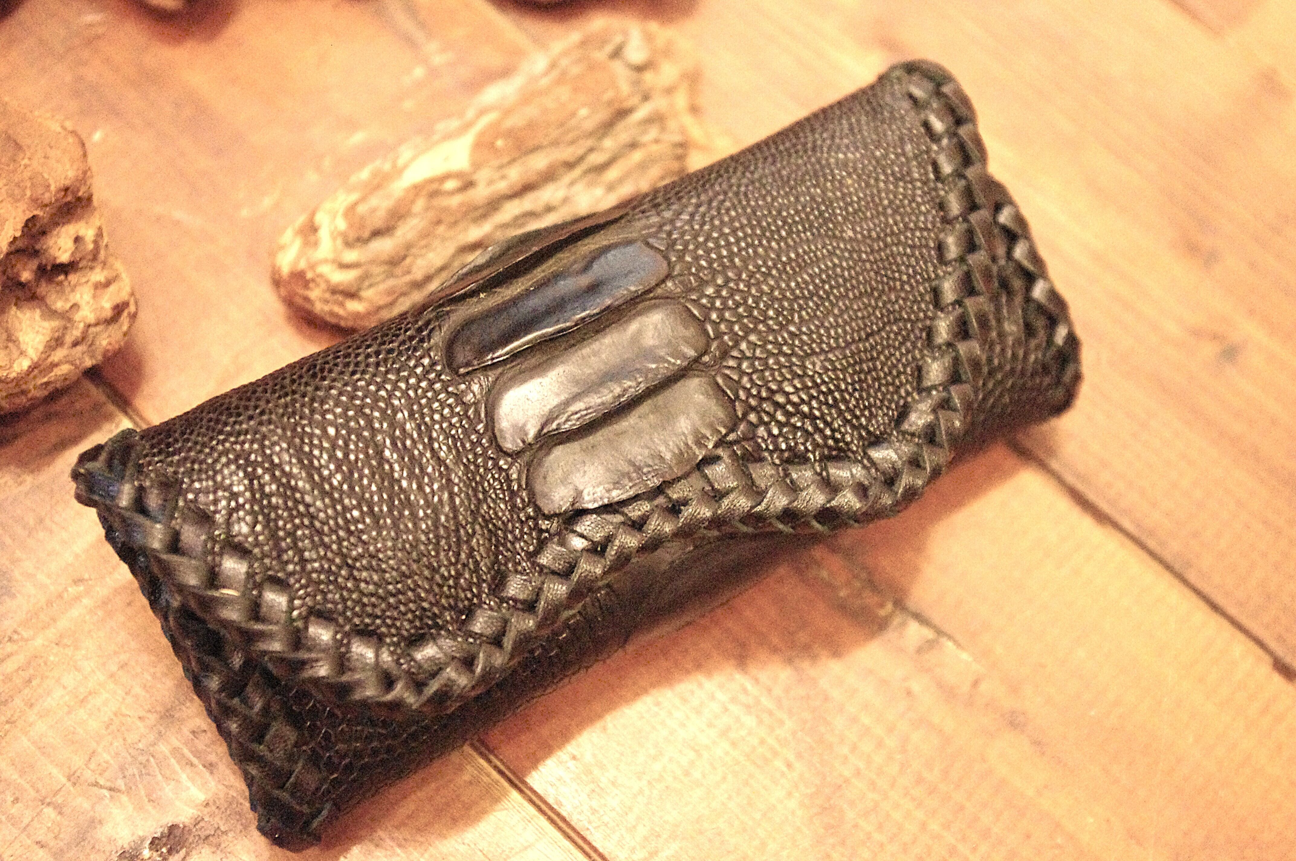 シンプルな通常アイテムに「オーストレッグ(ダチョウの脚)と外周をトリプルループ」で仕上げたインパクトのあるキーケースです。