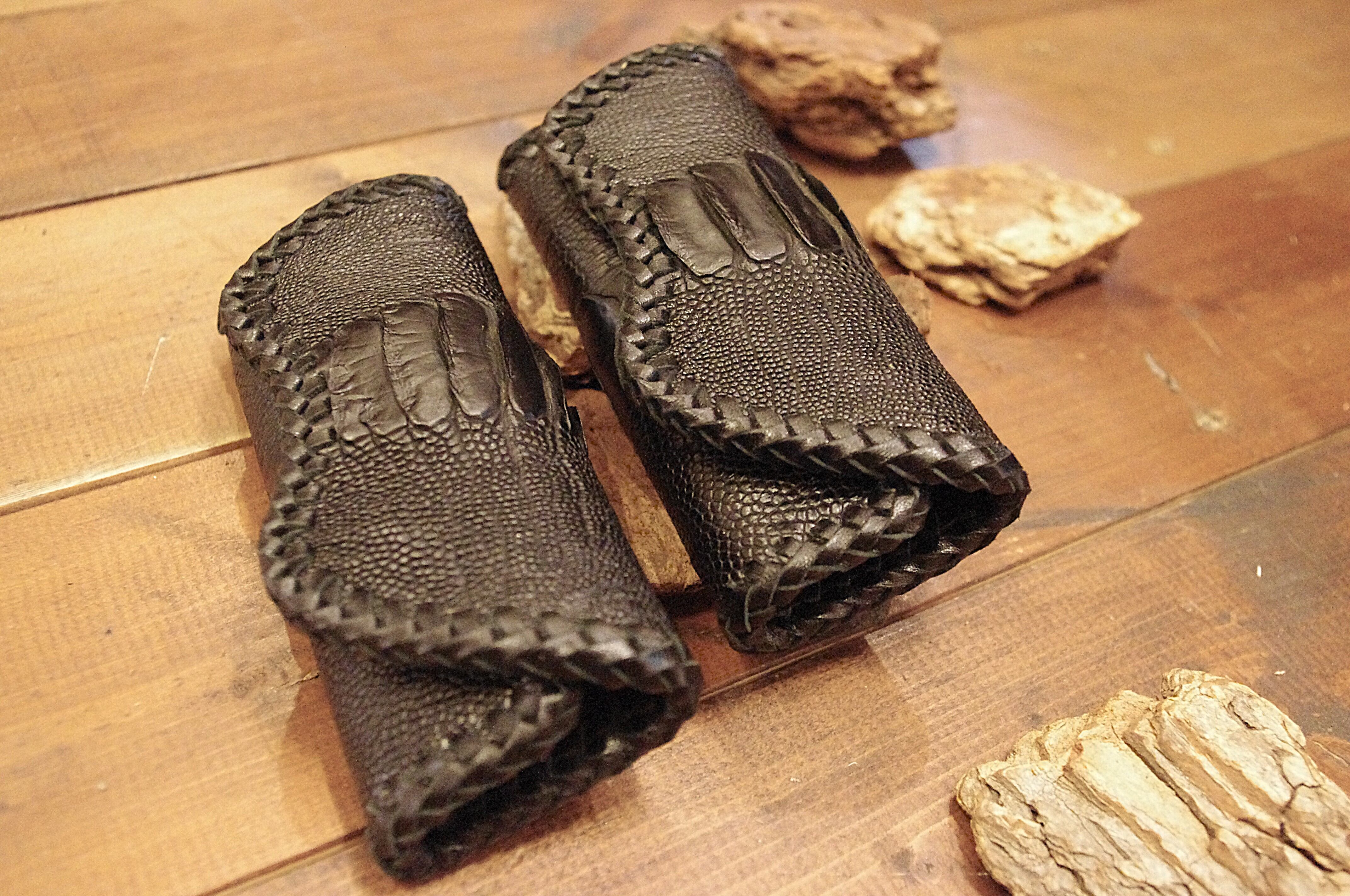 本体表はオーストレッグ(ダチョウの脚)、フチはカンガルーレースでトリプルループ