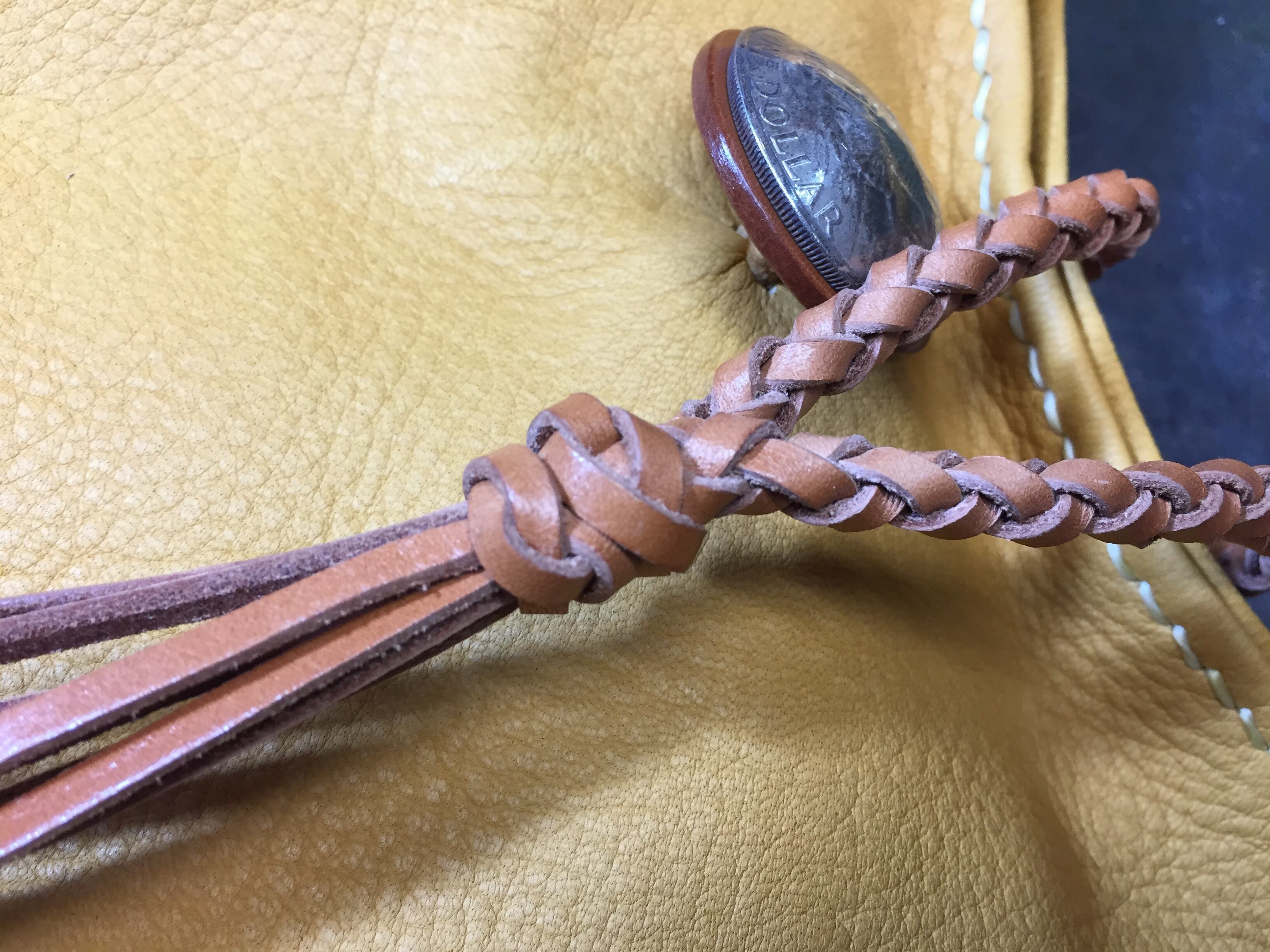 ・留め具として4本編みのロープをコンチョに引っ掛けるタイプです(4本編みを8本編みに変換)