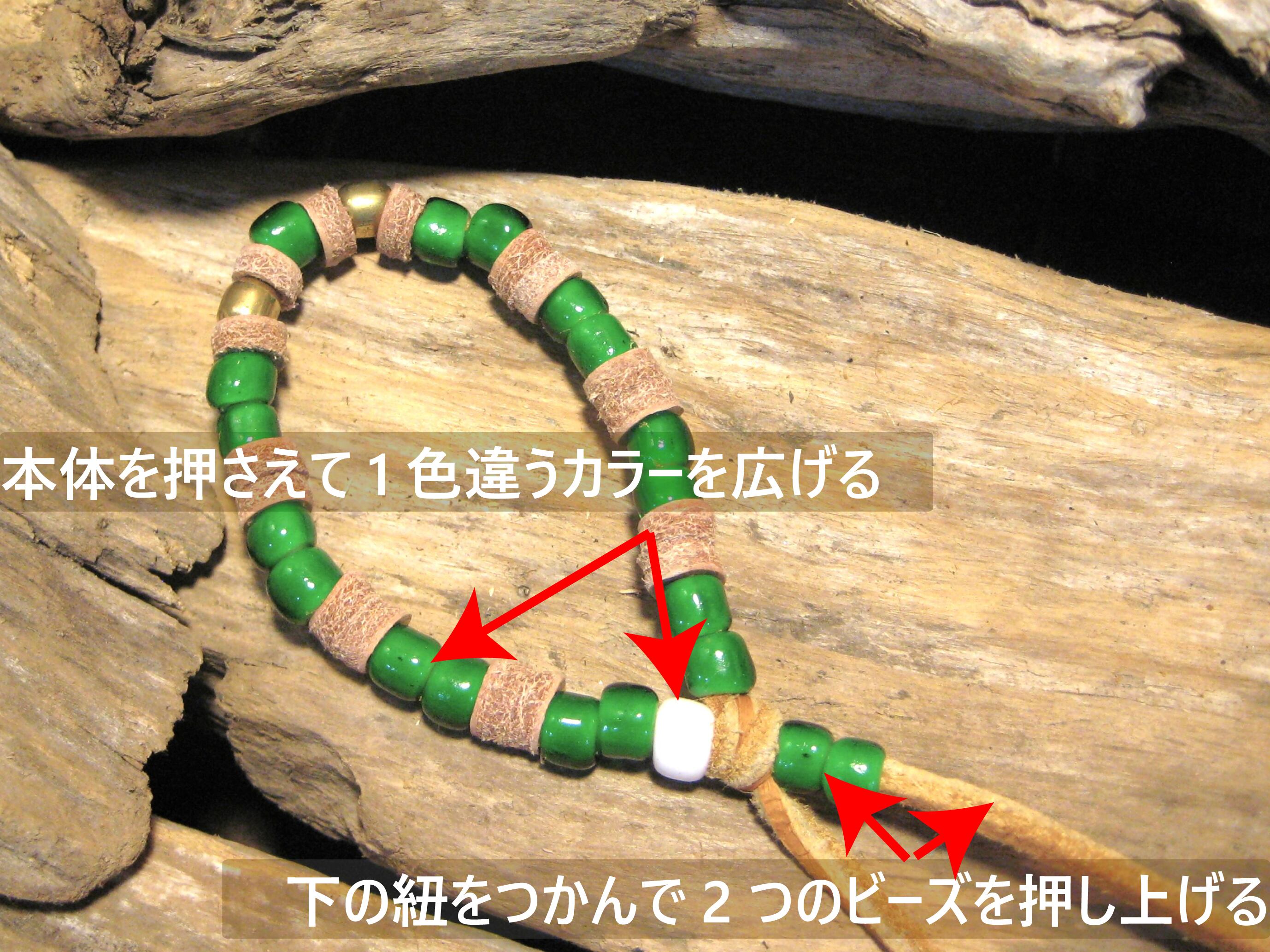 着け方は画像のように一つだけ違う色のビーズがありますので、