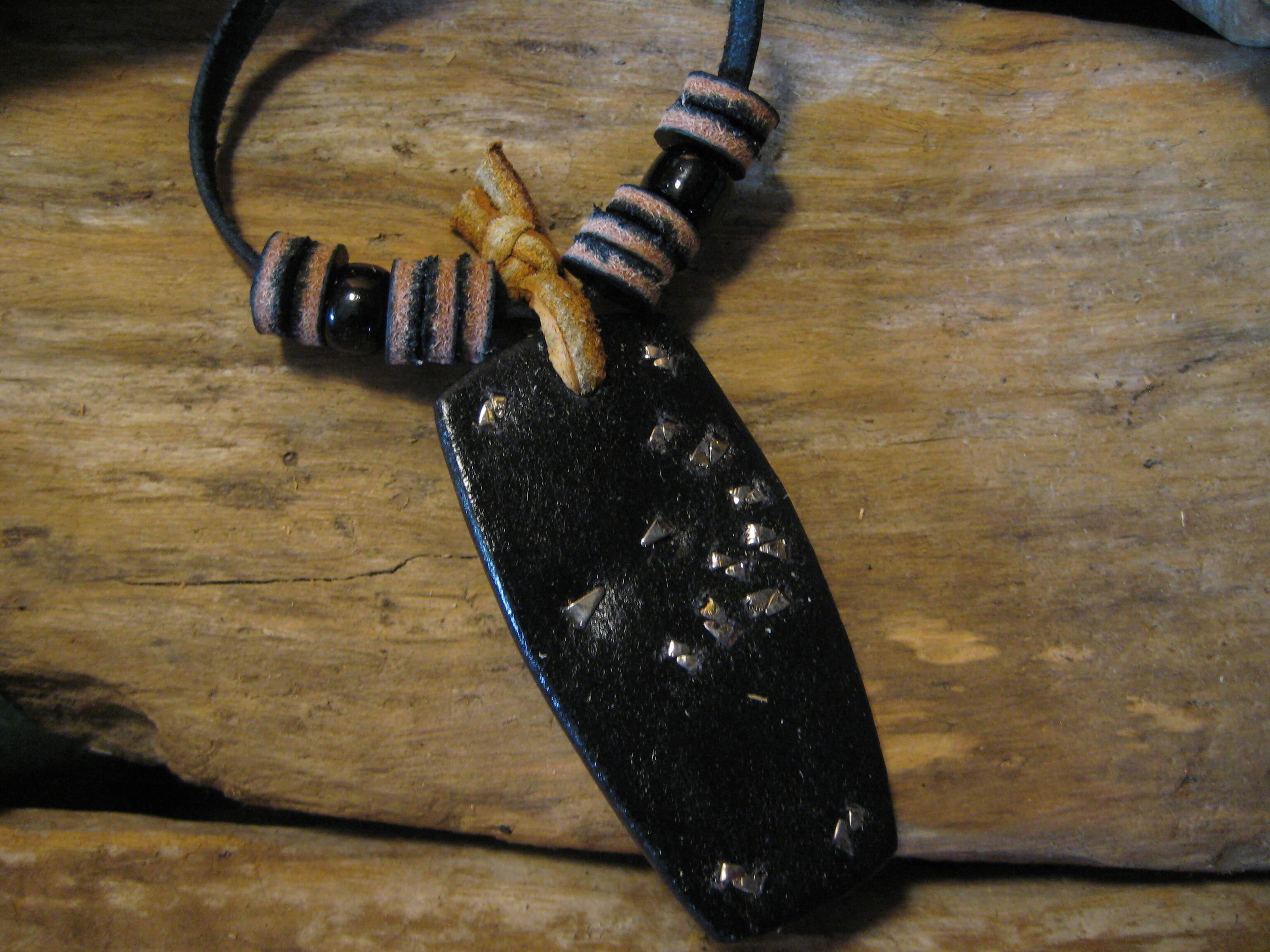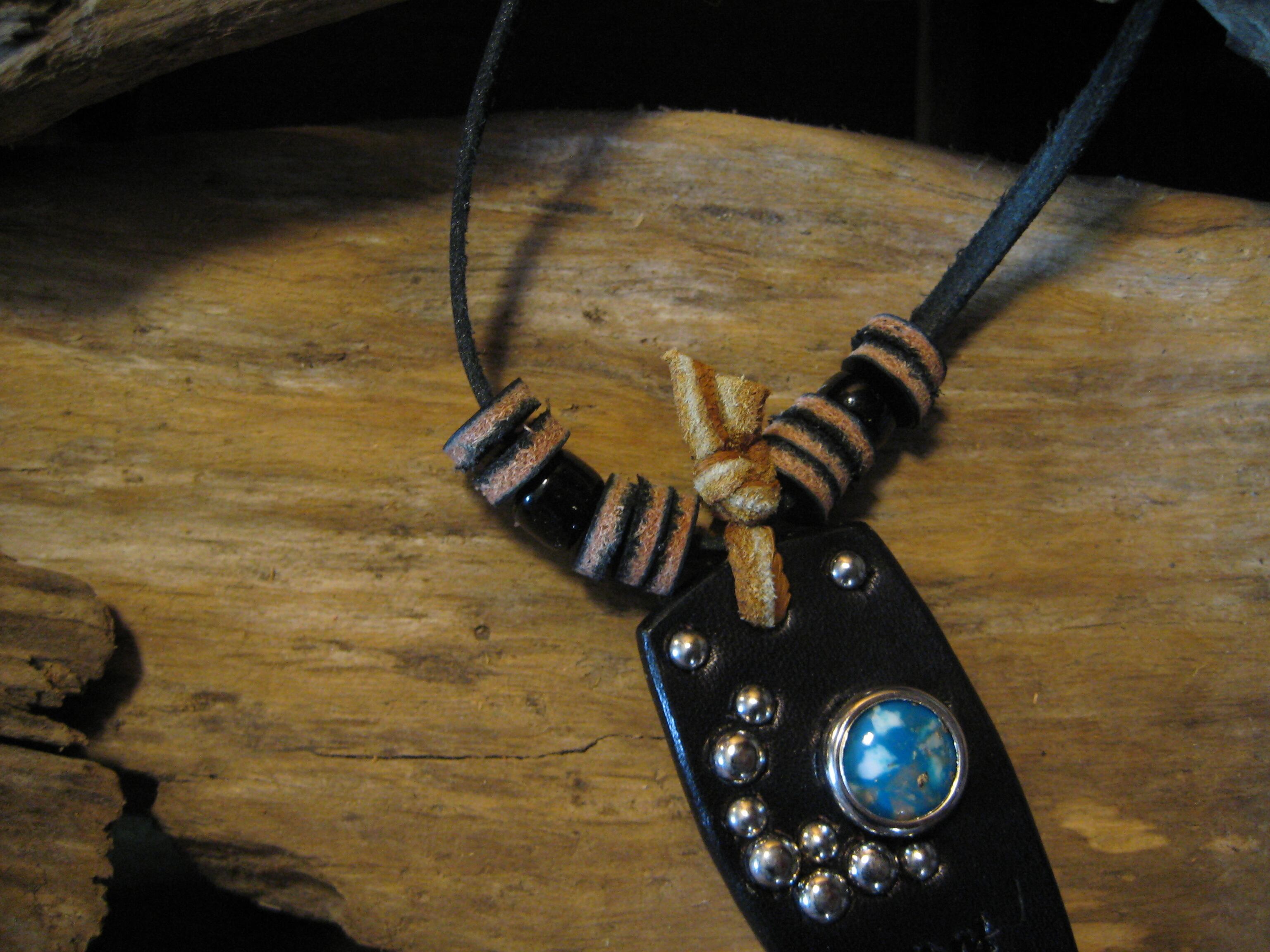 定番プレートネックレスの形を変えて、「煉りものターコイズ」、「アメリカンスタッズ」を打ち込んでいます。