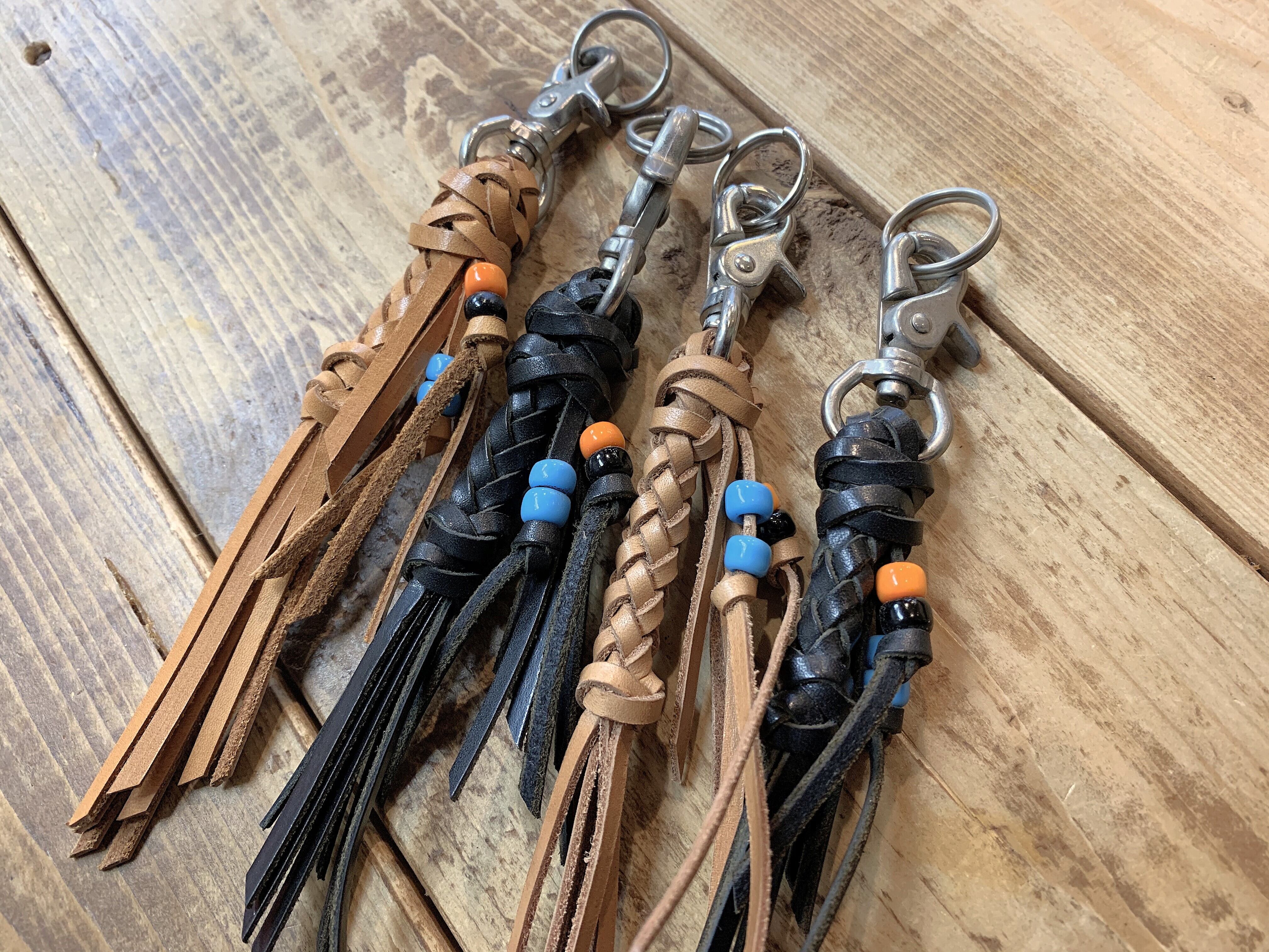 6本のレースを編みつけて作っているため、使い始めはゴツゴツした印象ですが、馴染につれしなやかな表情へと変化し、頻繁に使うカギにつけるため馴染みも早い傾向にあります。