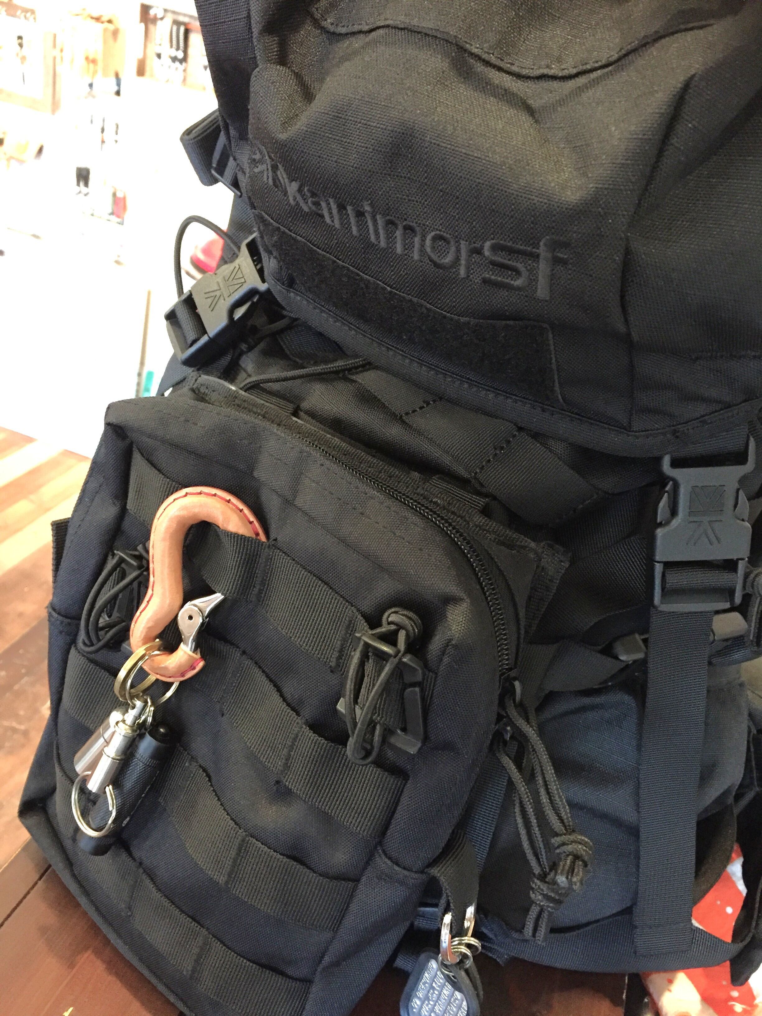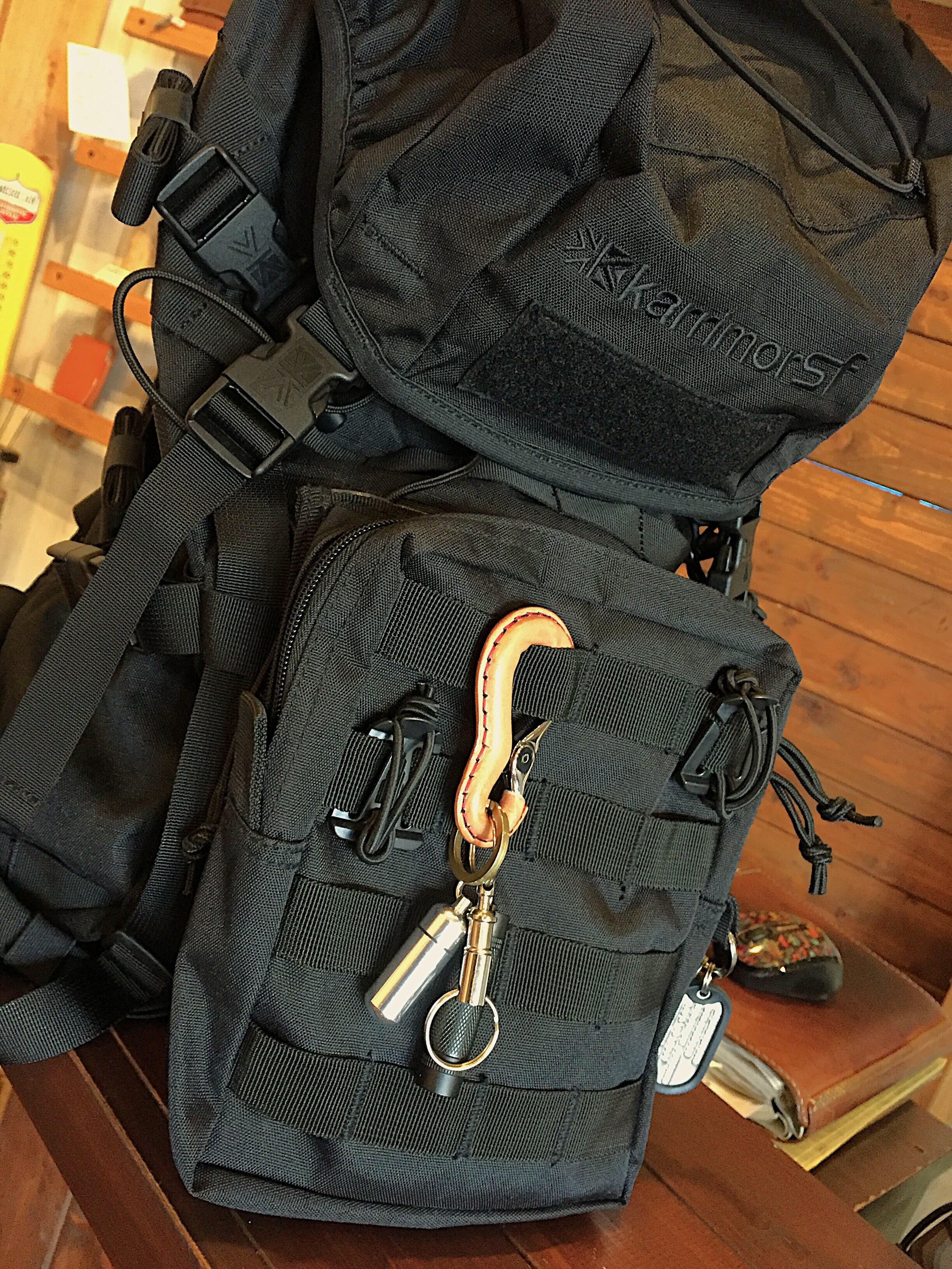 無骨なカラビナが多い中、スタイリッシュな革巻きはいかがでしょうか?