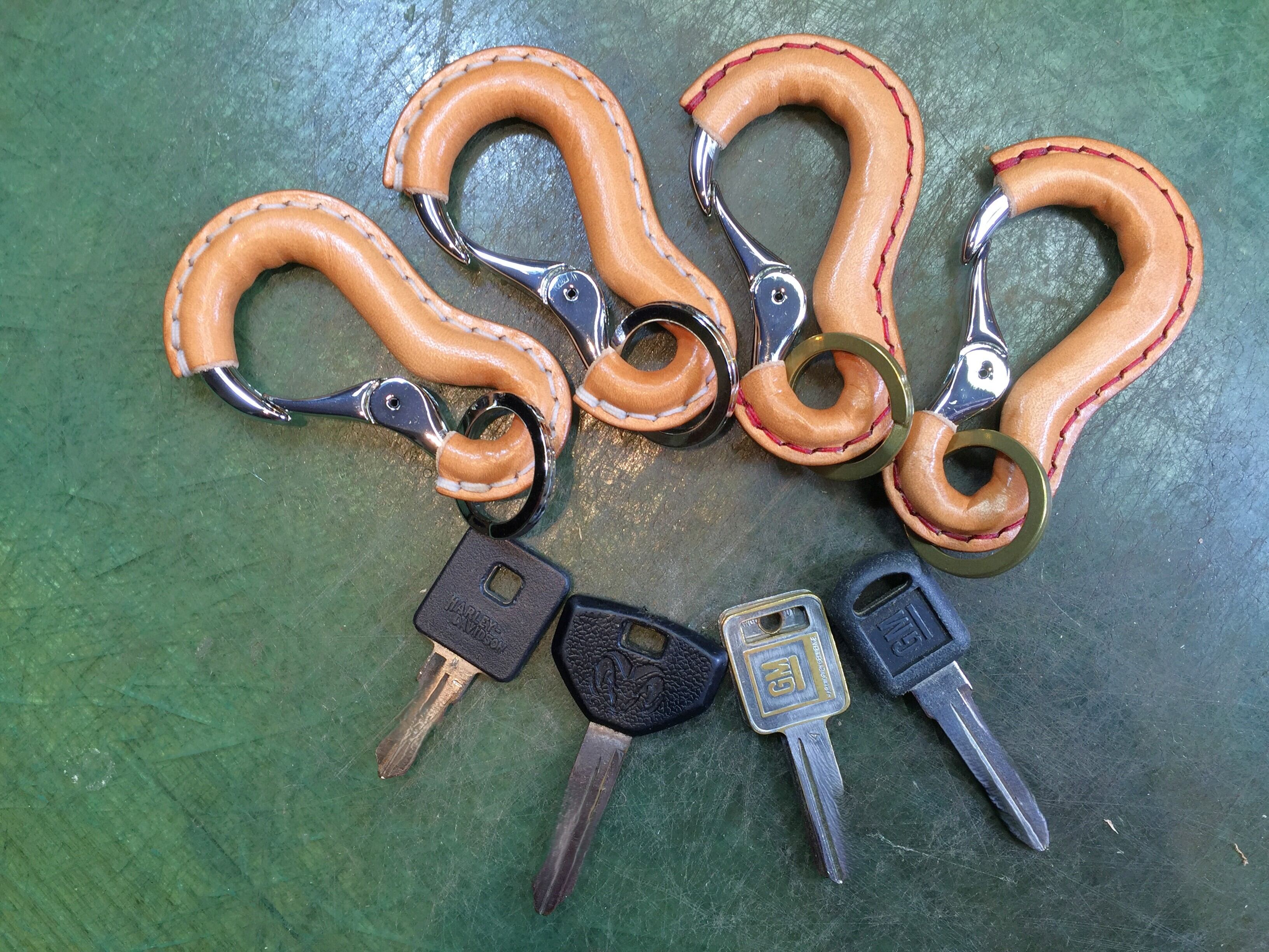 1つ1つ手作業でカラビナ本体に巻き付け縫い上げました。