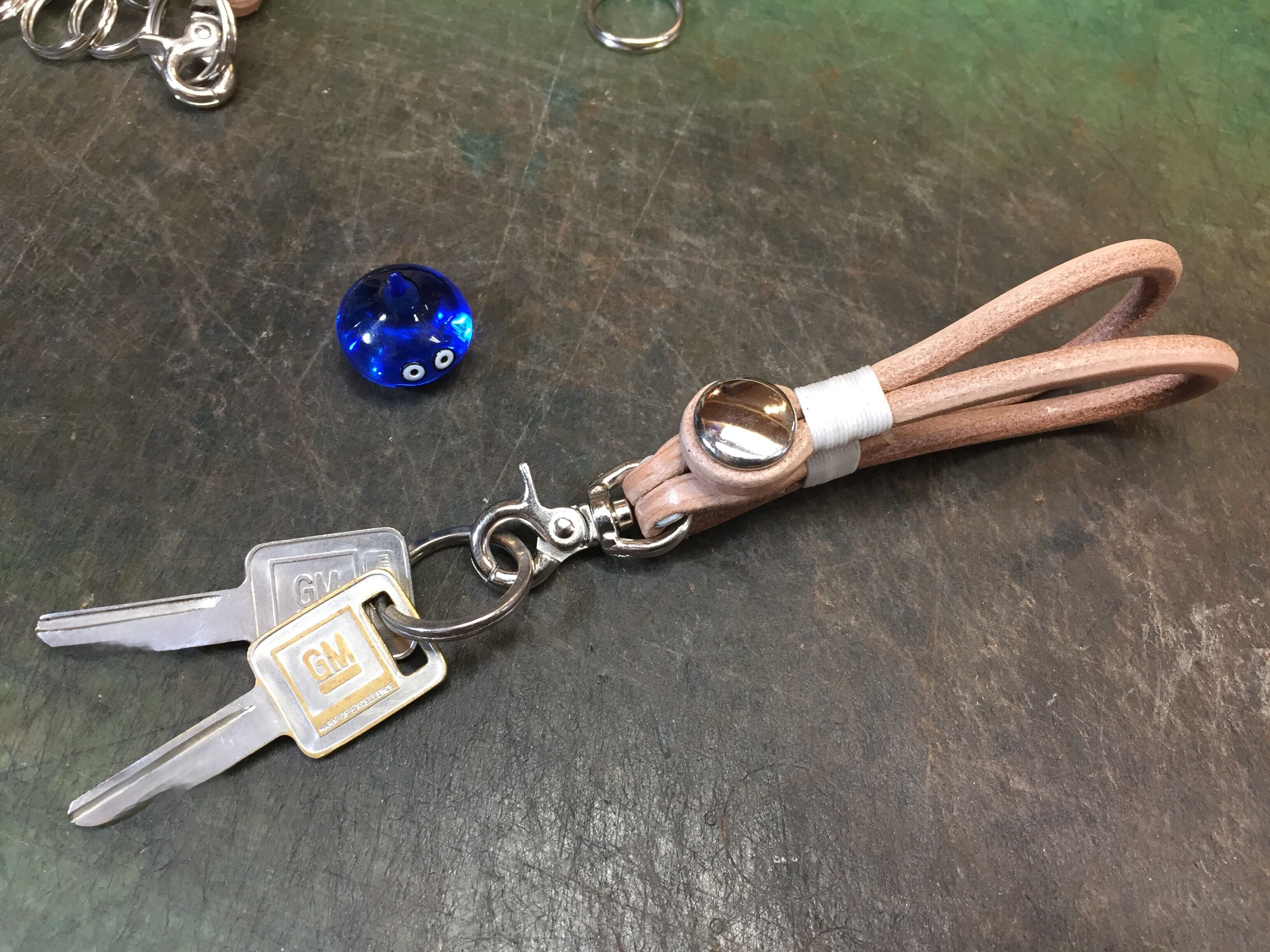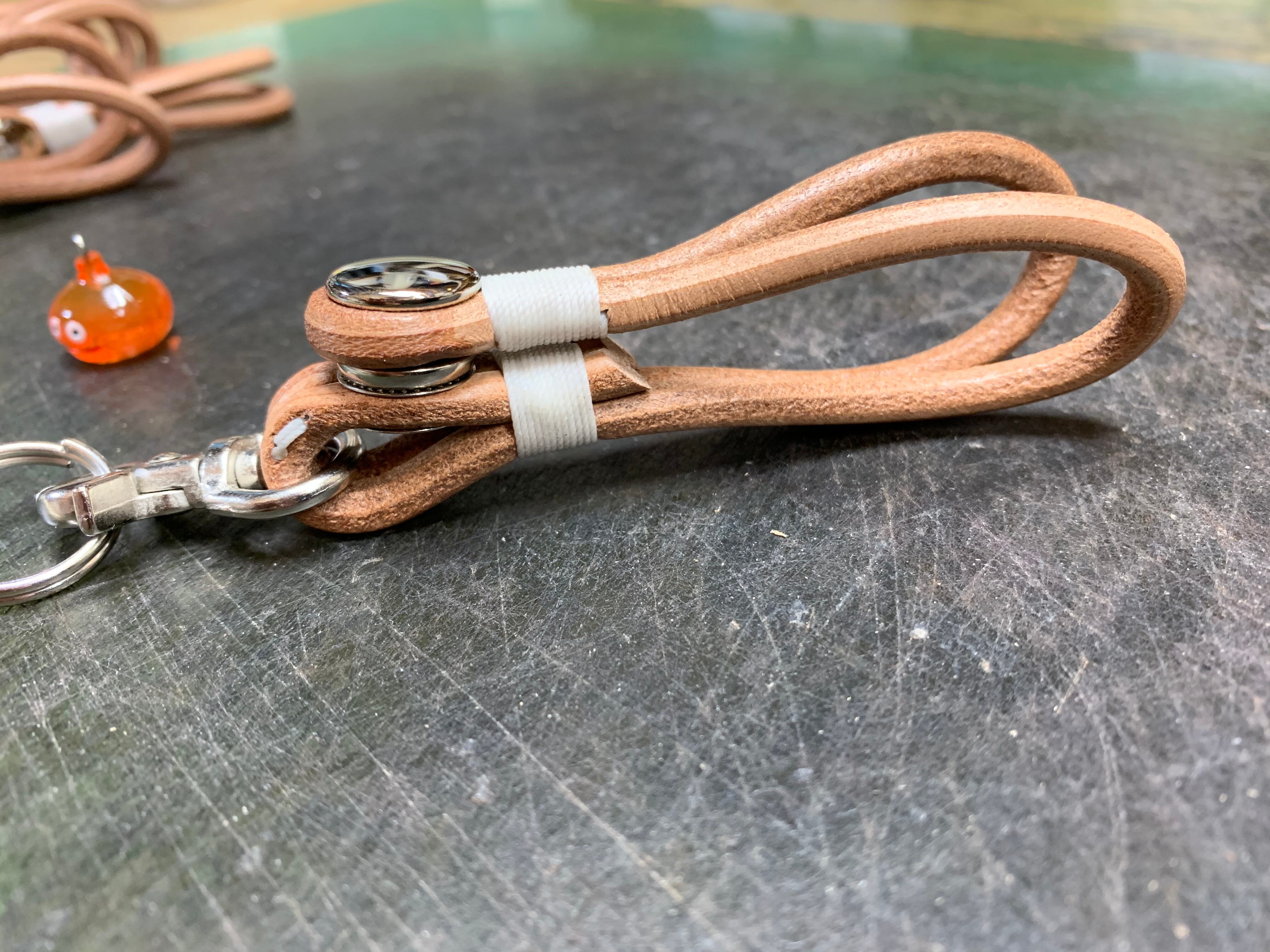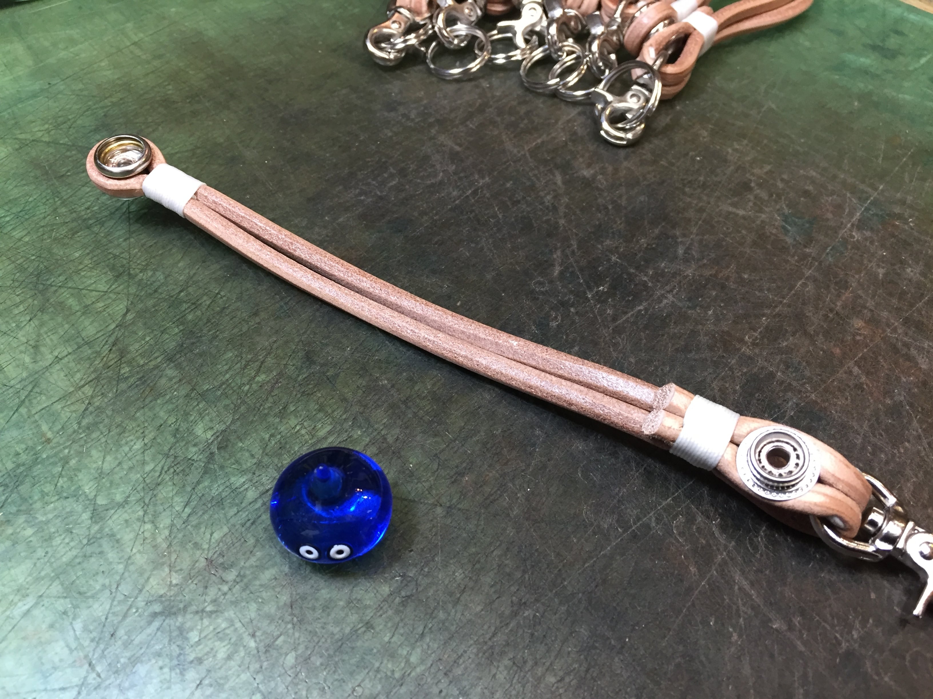 「丸牛ロープ」と言われる丸い革ひもを使っていますが、他に余計なモノがない分いろいろな部分が見えてしまうので半端ではつくれません。