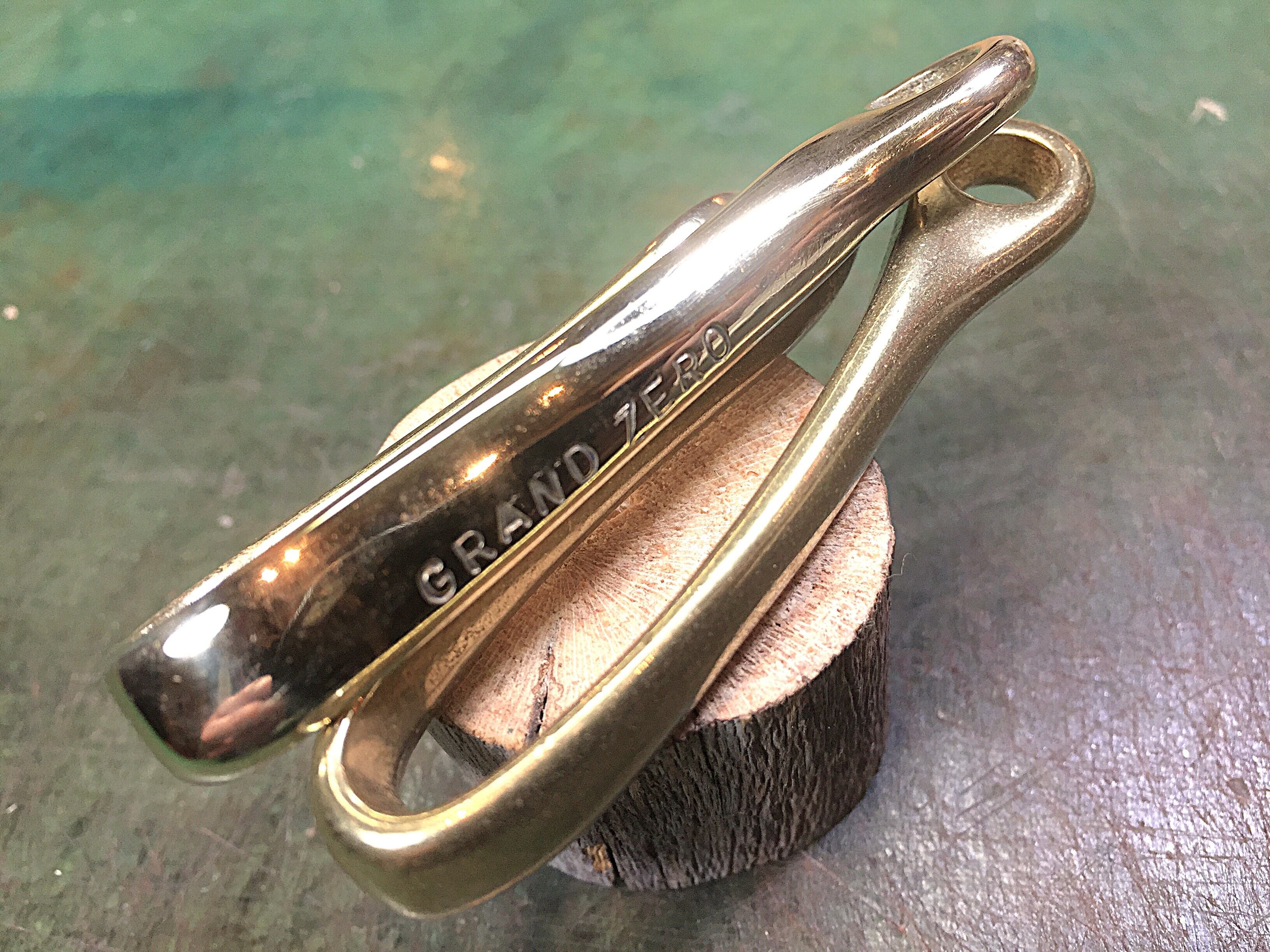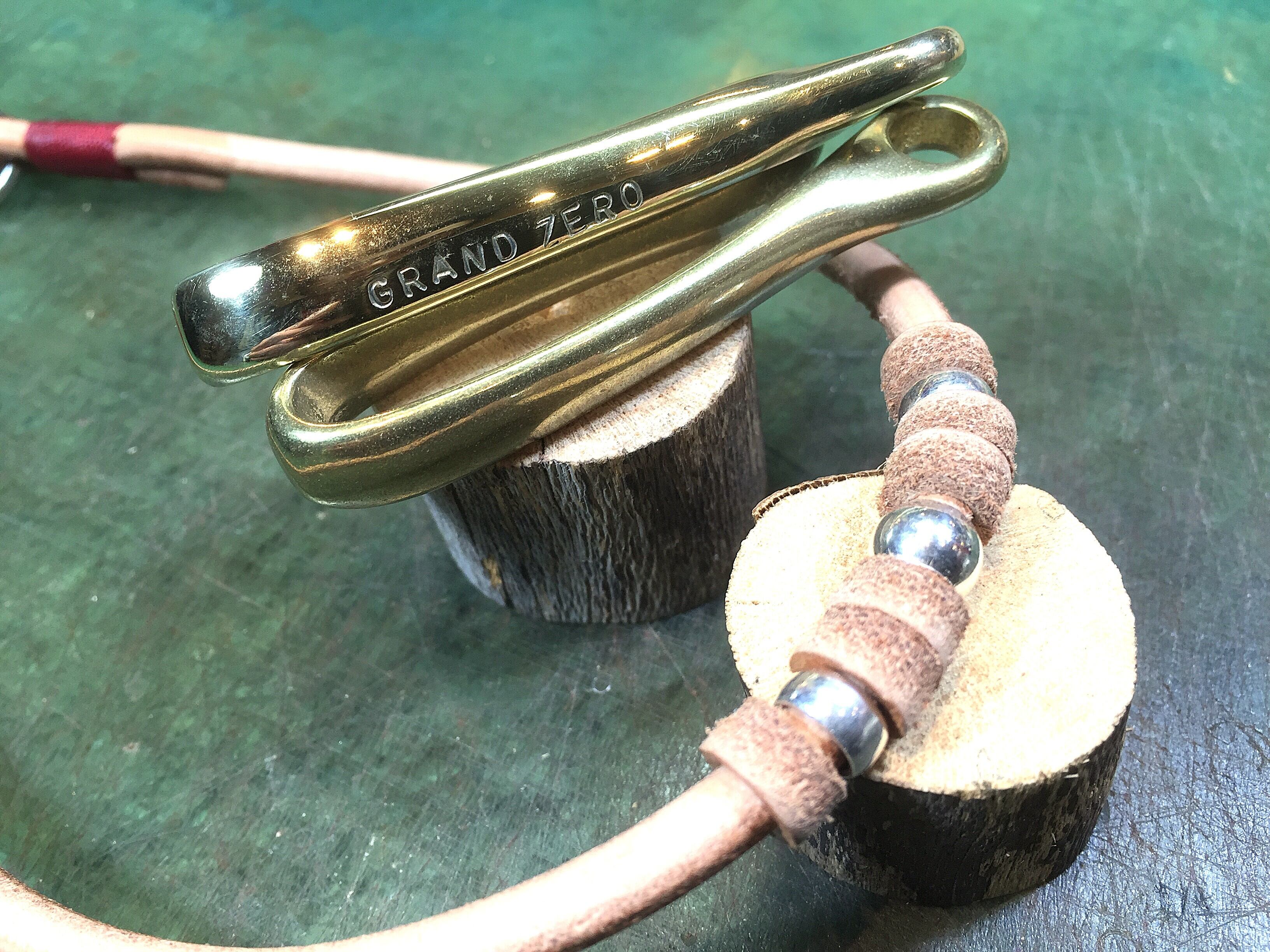 真ちゅう鋳物のフックを手作業で磨き上げGRANDZEROの刻印を入れたモノです。