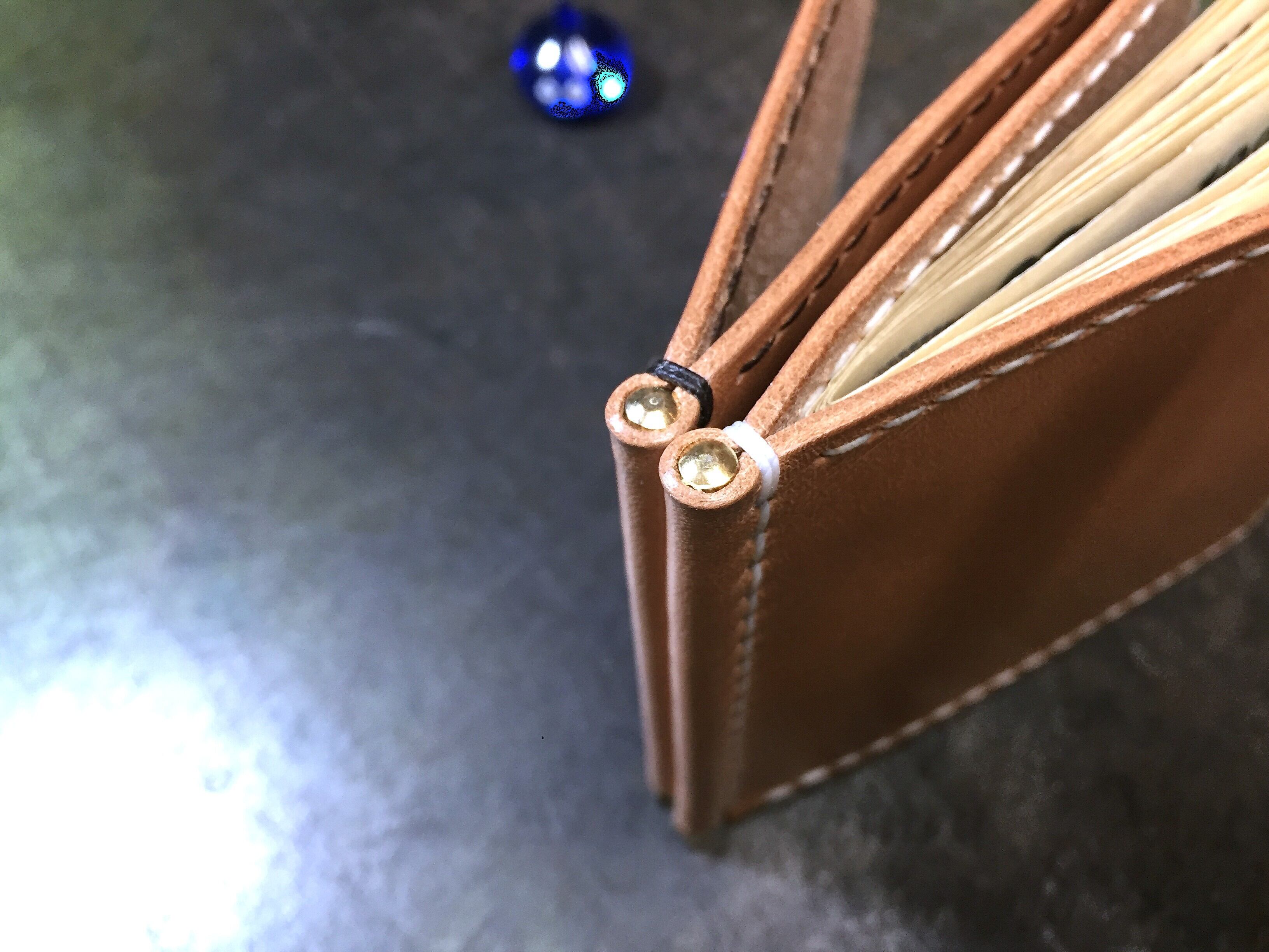 マネークリップ用の金具の4分の3ぐらいの部分は「バネになっています」