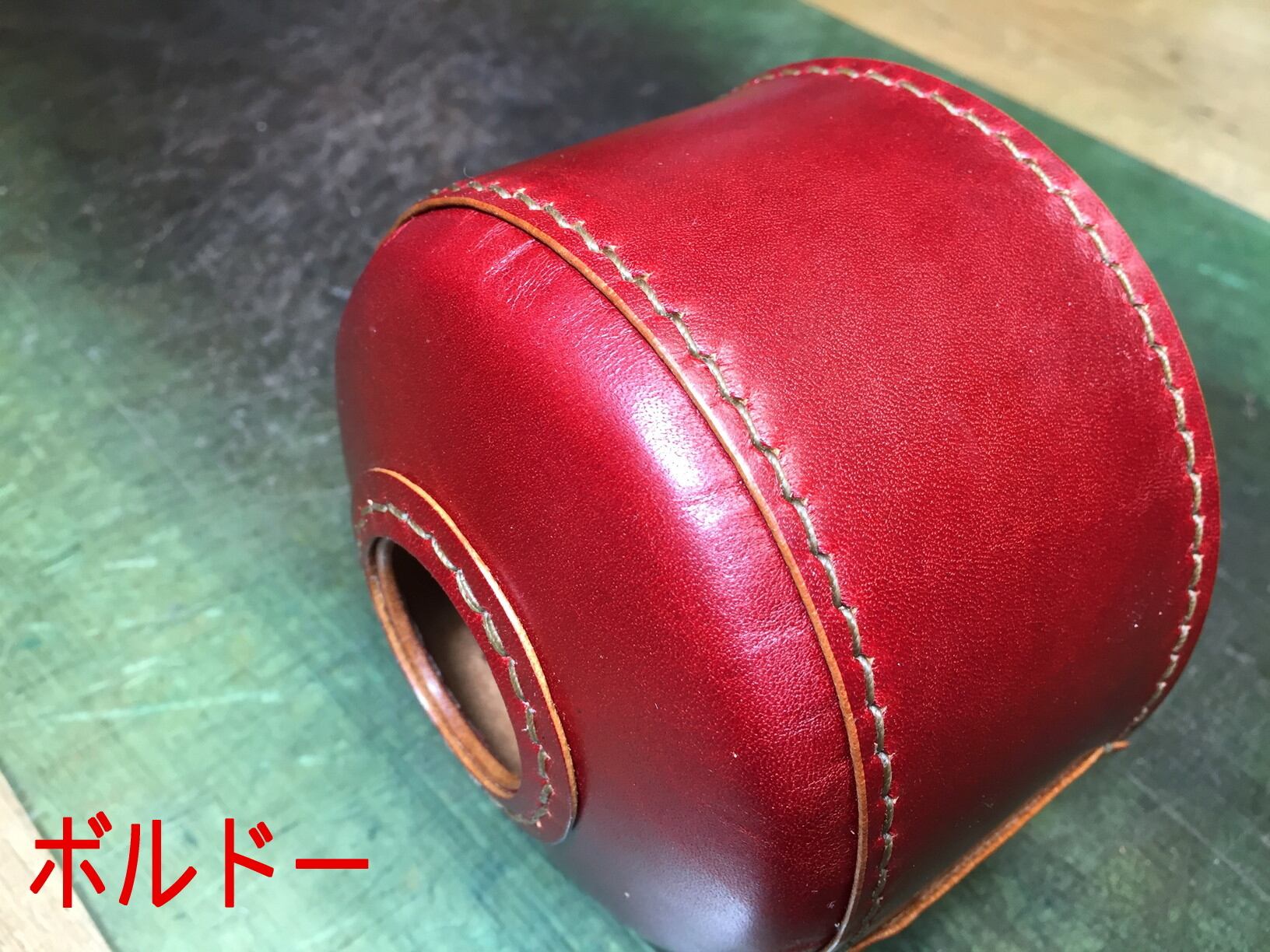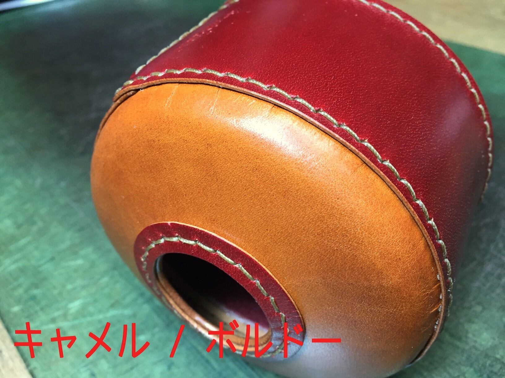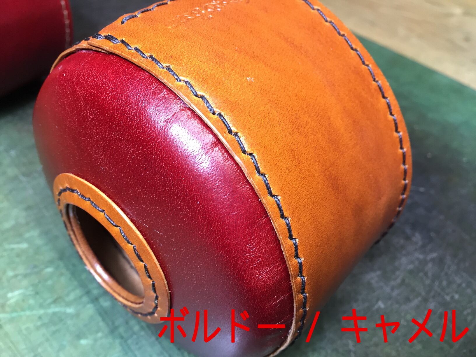 さらにキャメルに染色、ボルドーはキャメルに染めた後さらに赤で染めています